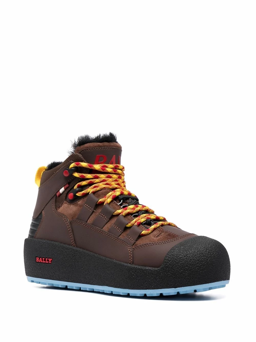 Doublure en fourrure artificielle, logo embossé sur le côté, languette à logo imprimé, lacets contrastants, bout rond, fermeture à lacer sur le devant, semelle à plateforme, semelle plate en caoutchouc, hauteur cheville. Matière : cuir.