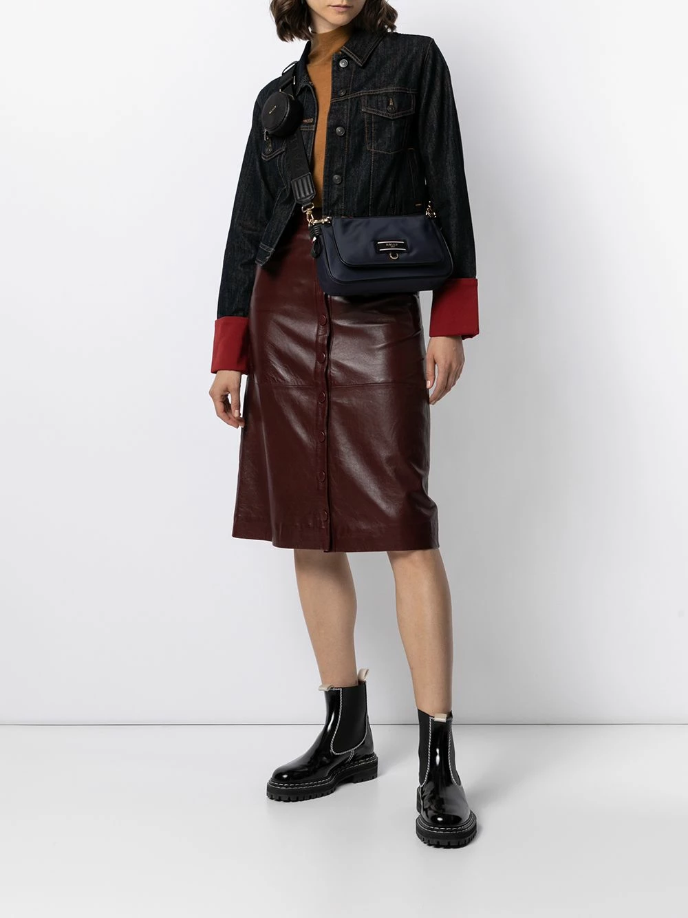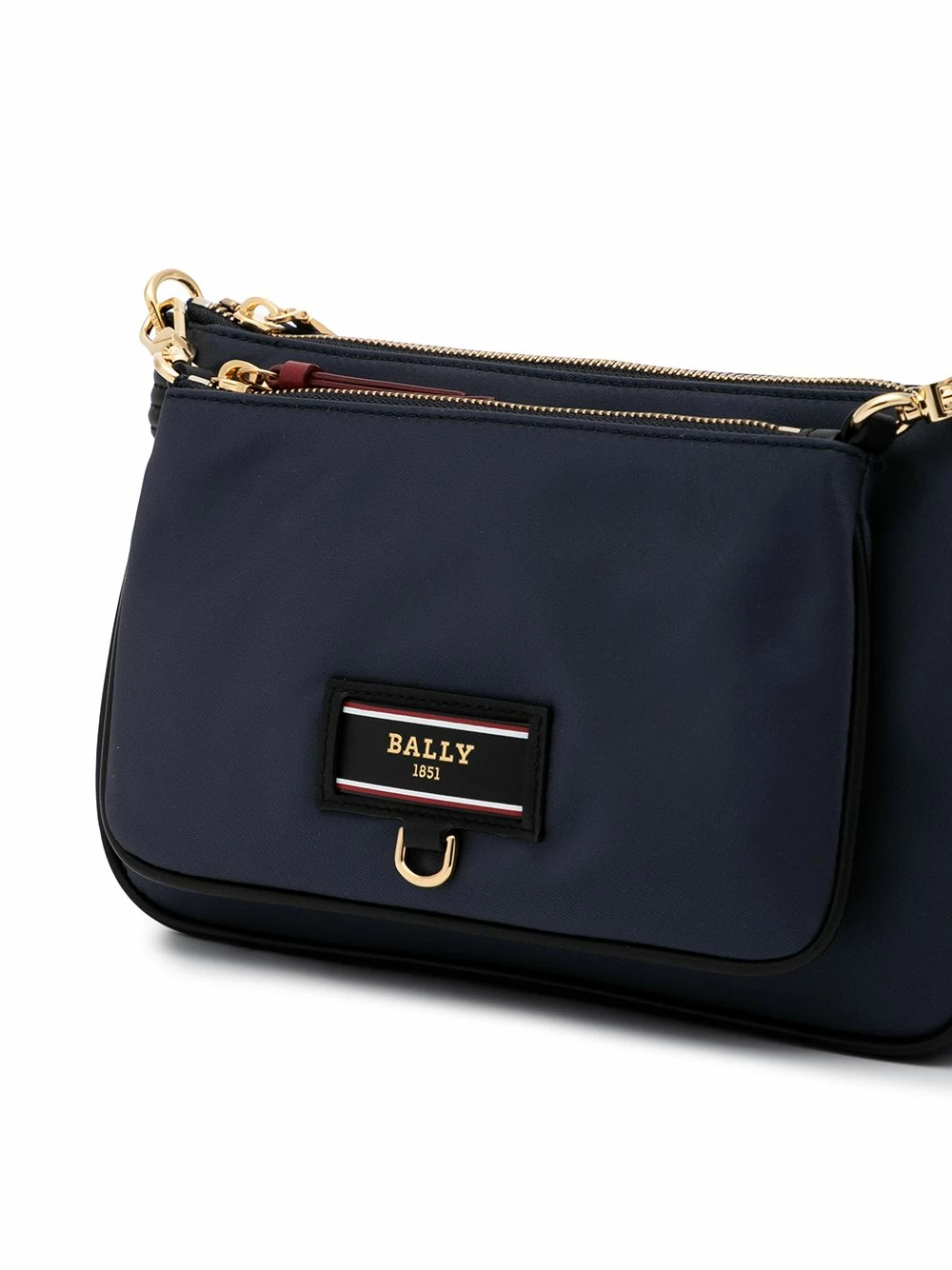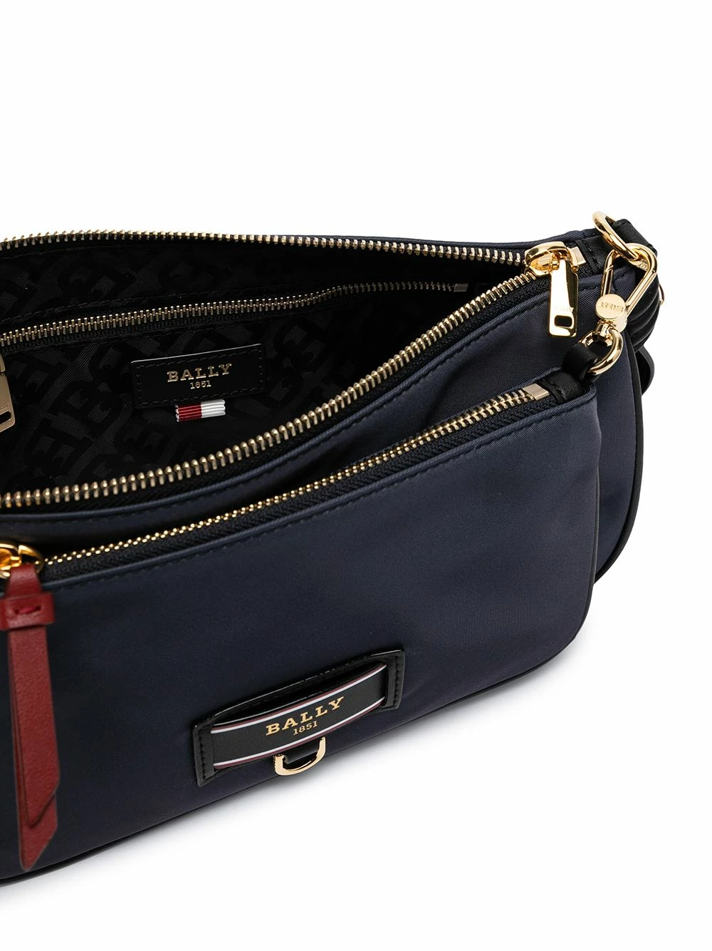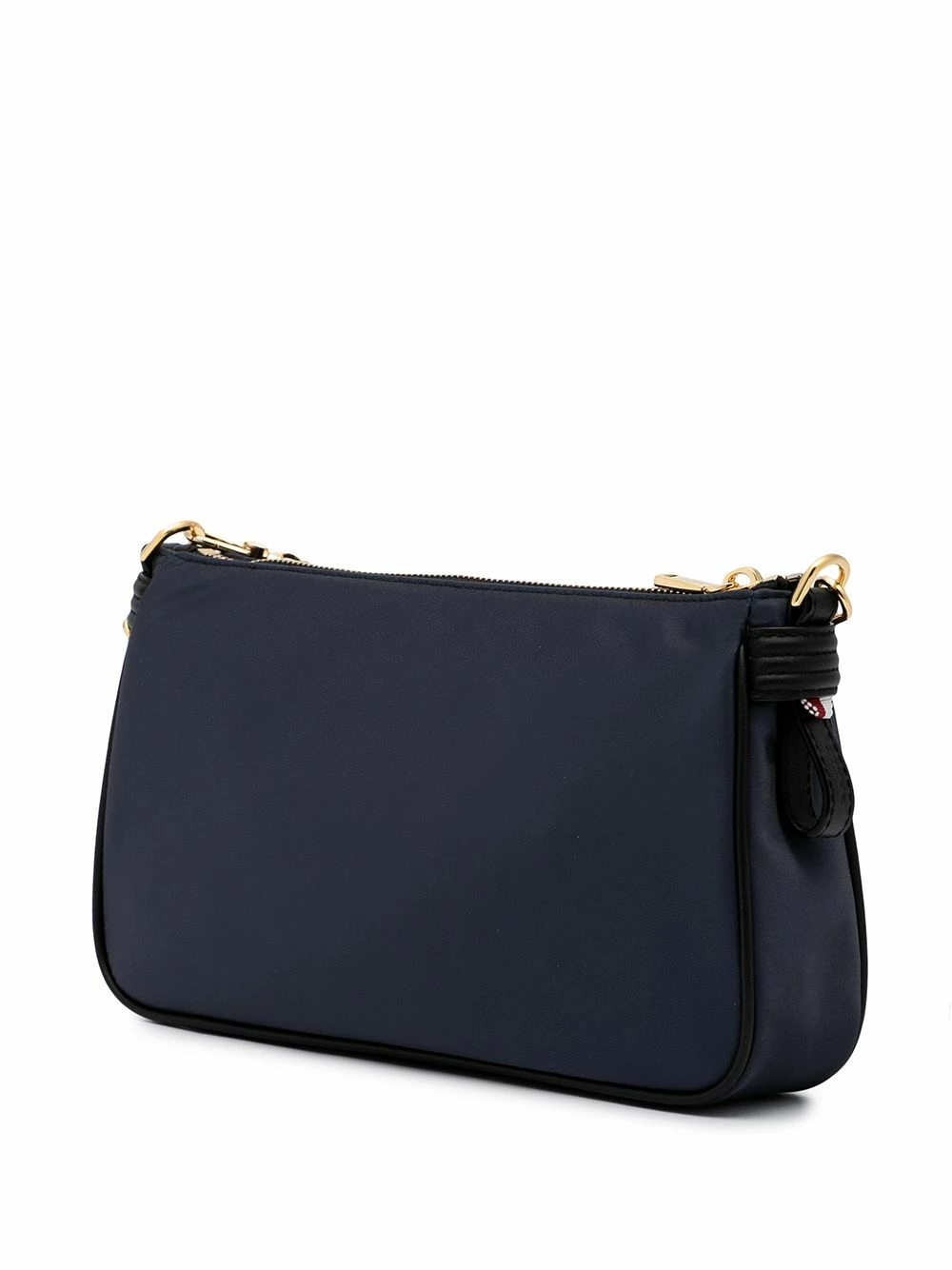 Patch logo sur le devant, bride porté épaule détachable et ajustable, fermeture zippée sur le dessus, poches intérieures zippées, patch logo intérieur, compartiment zippé sur le devant, finitions en métal doré.