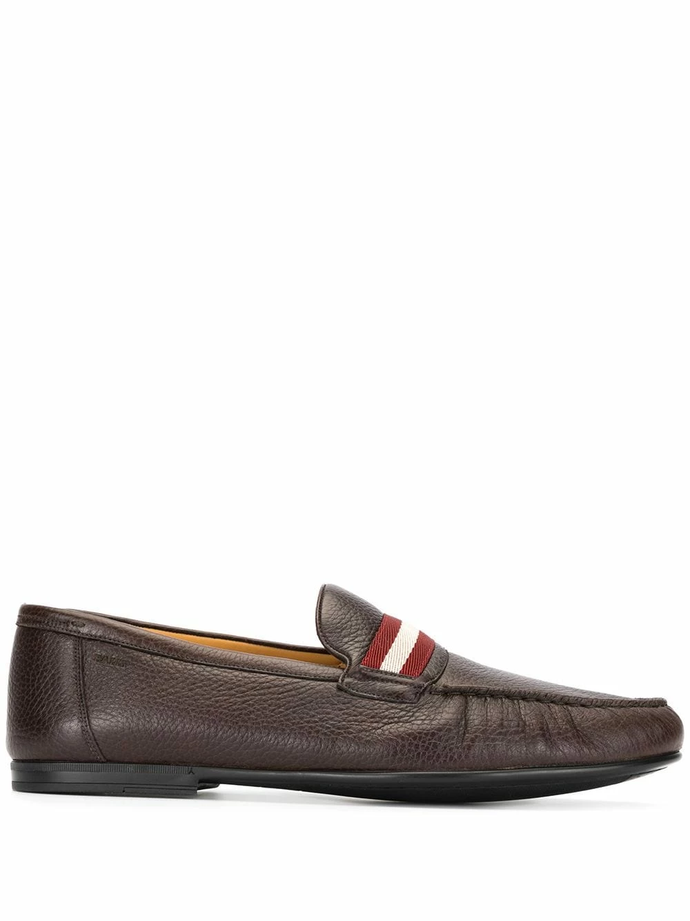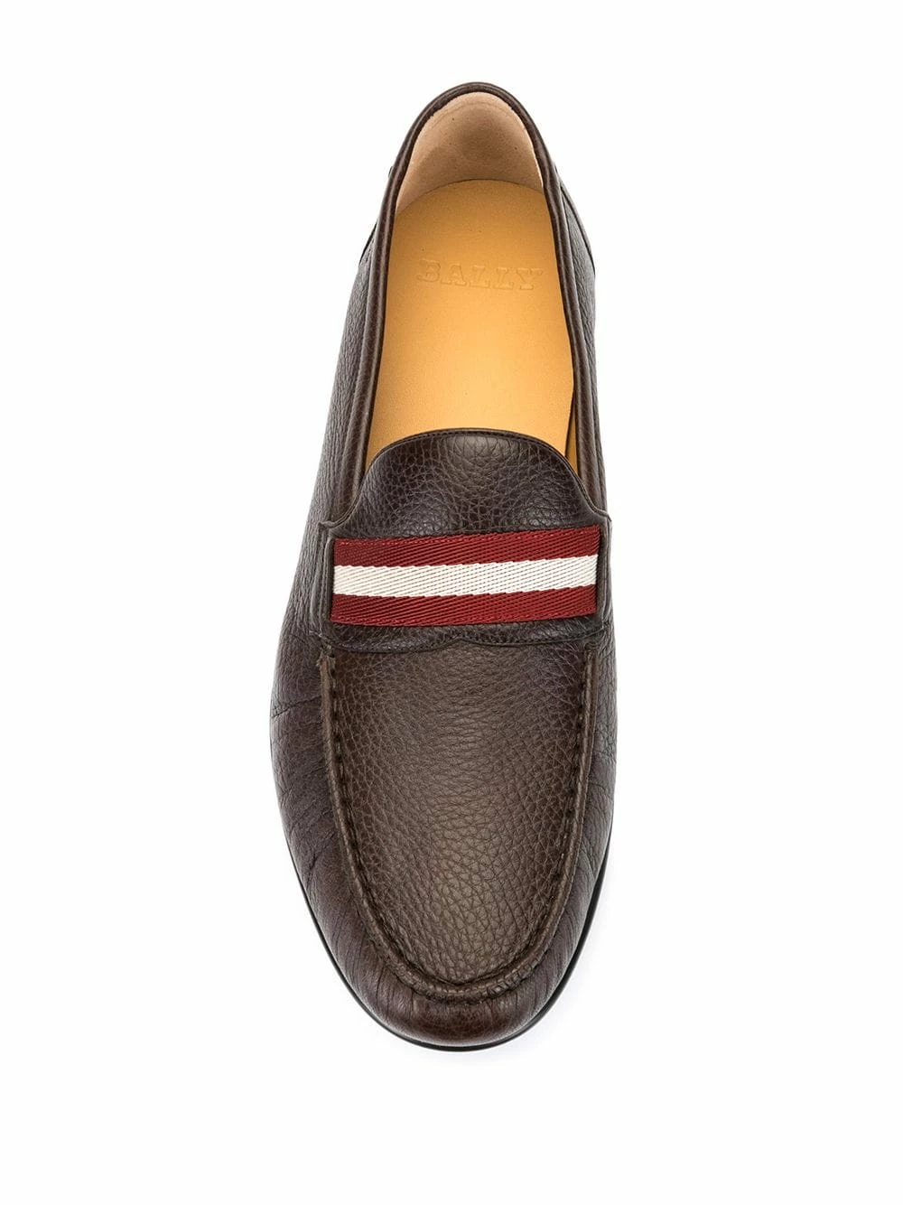 Mocassins à détail rayé en grain cuir Bally avec bout rond, semelle intérieure à logo et design à enfiler.