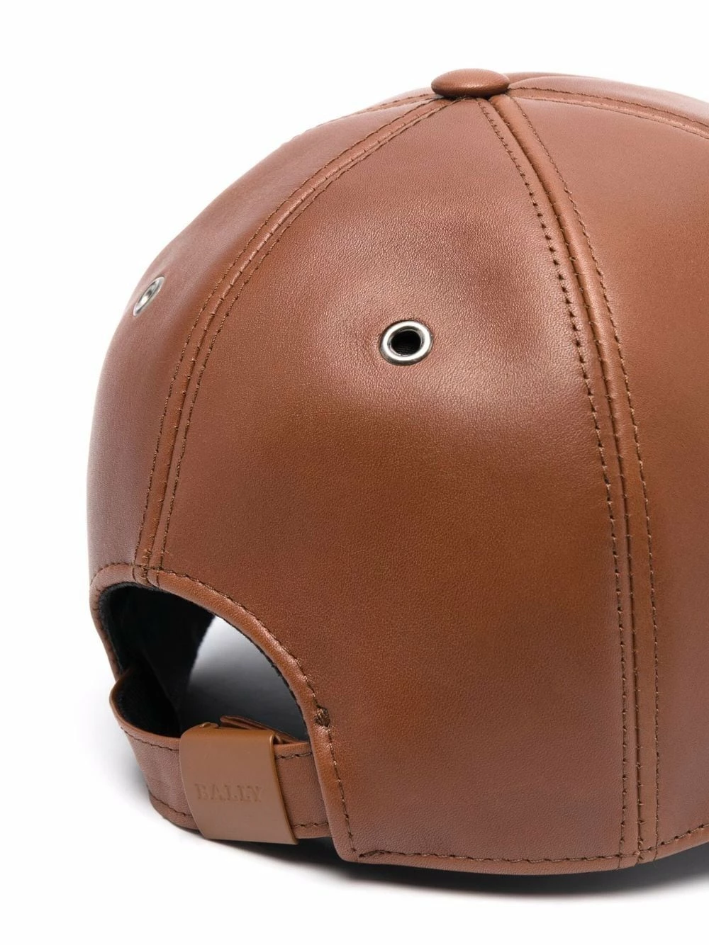 Marron, cuir de veau, coton, logo embossé sur le devant, bord incurvé.