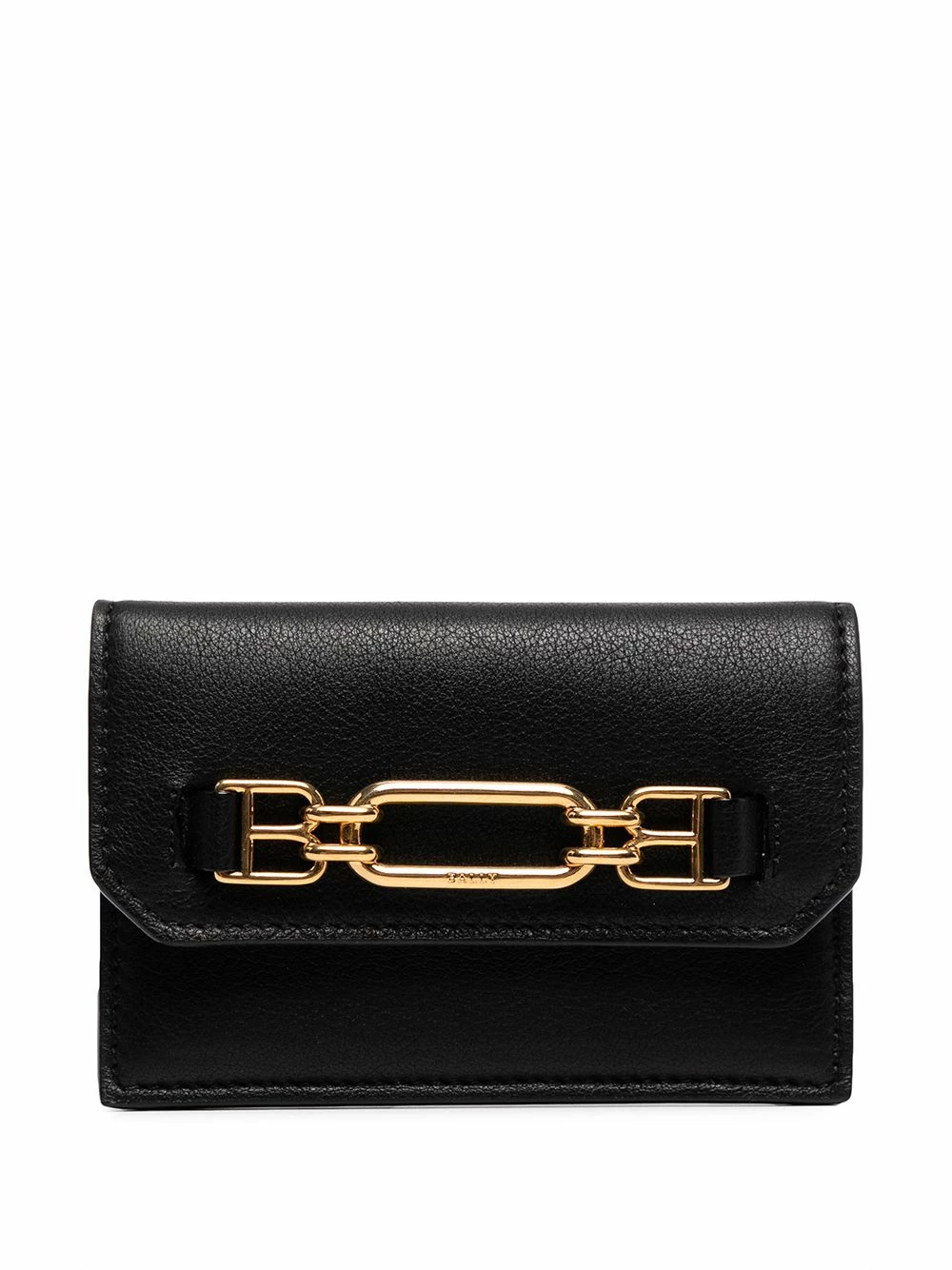 Plaque logo dorée, rabat sur le dessus à boutons pression, poche plaquée à l’arrière. Couleur : noir. Matière : cuir.