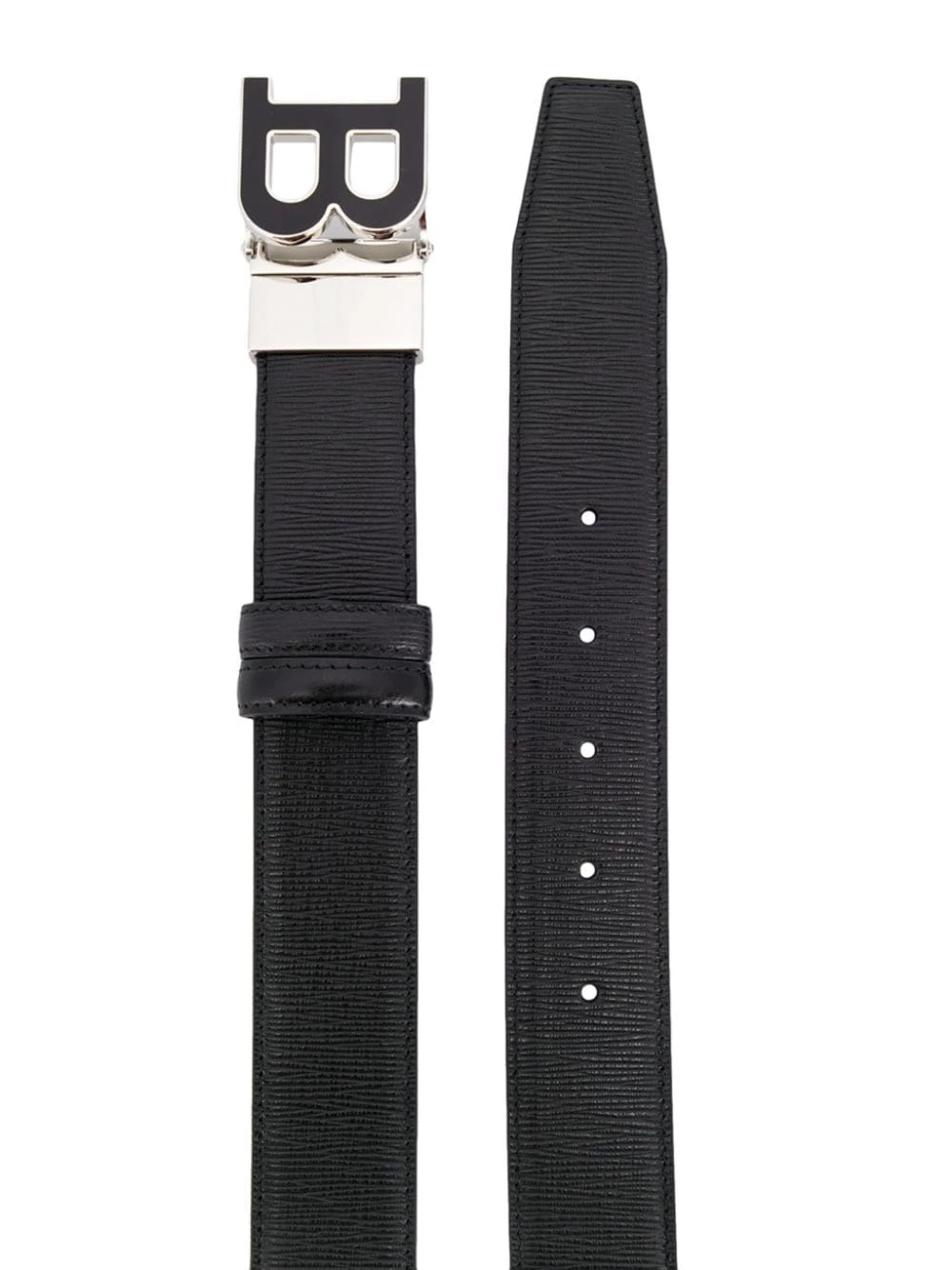 Ceinture à boucle logo en cuirs Bally avec taille ajustable et détails argentés. Couleur : noir.