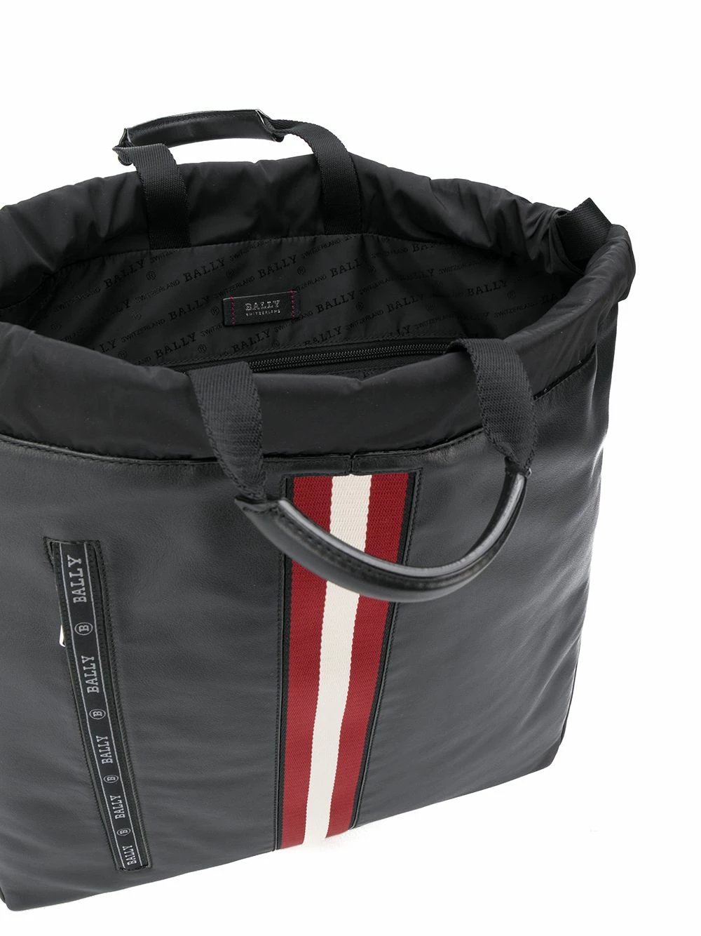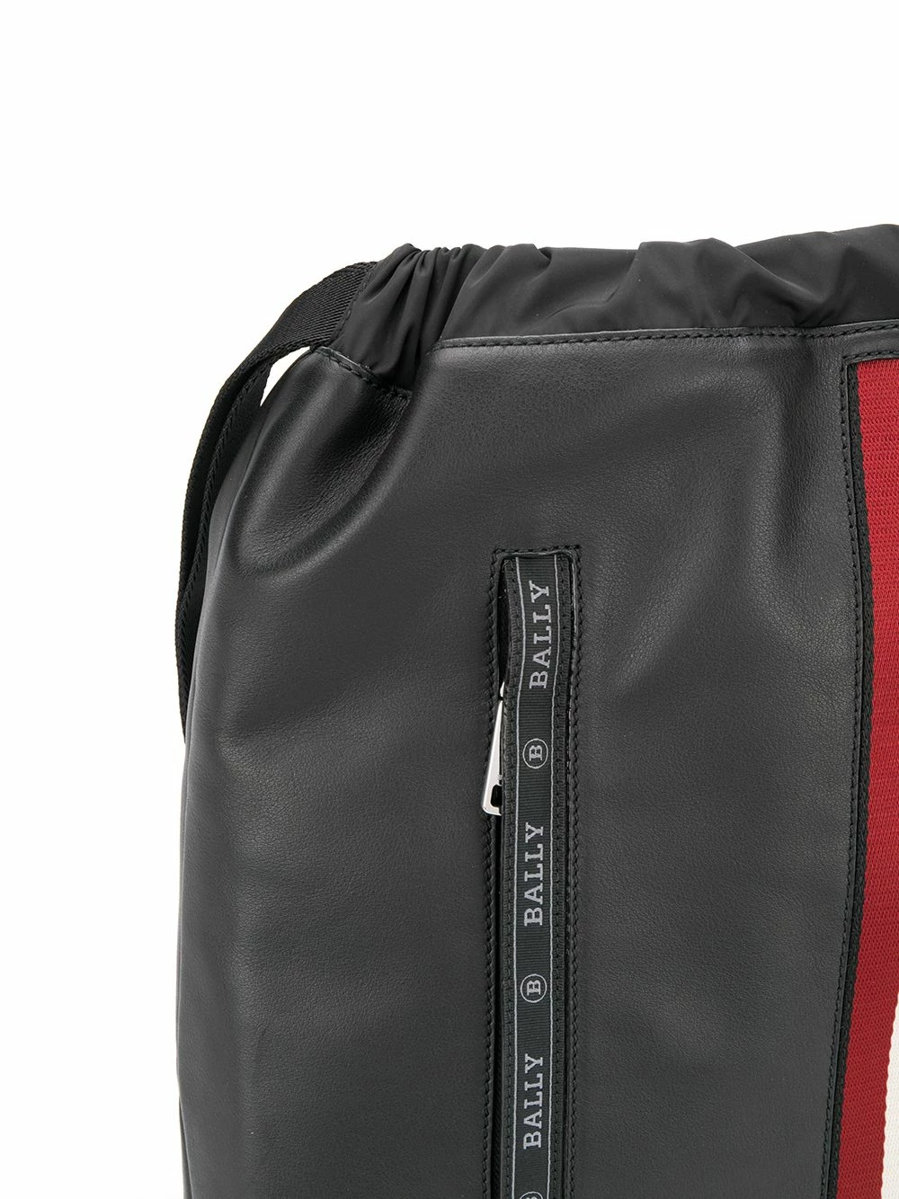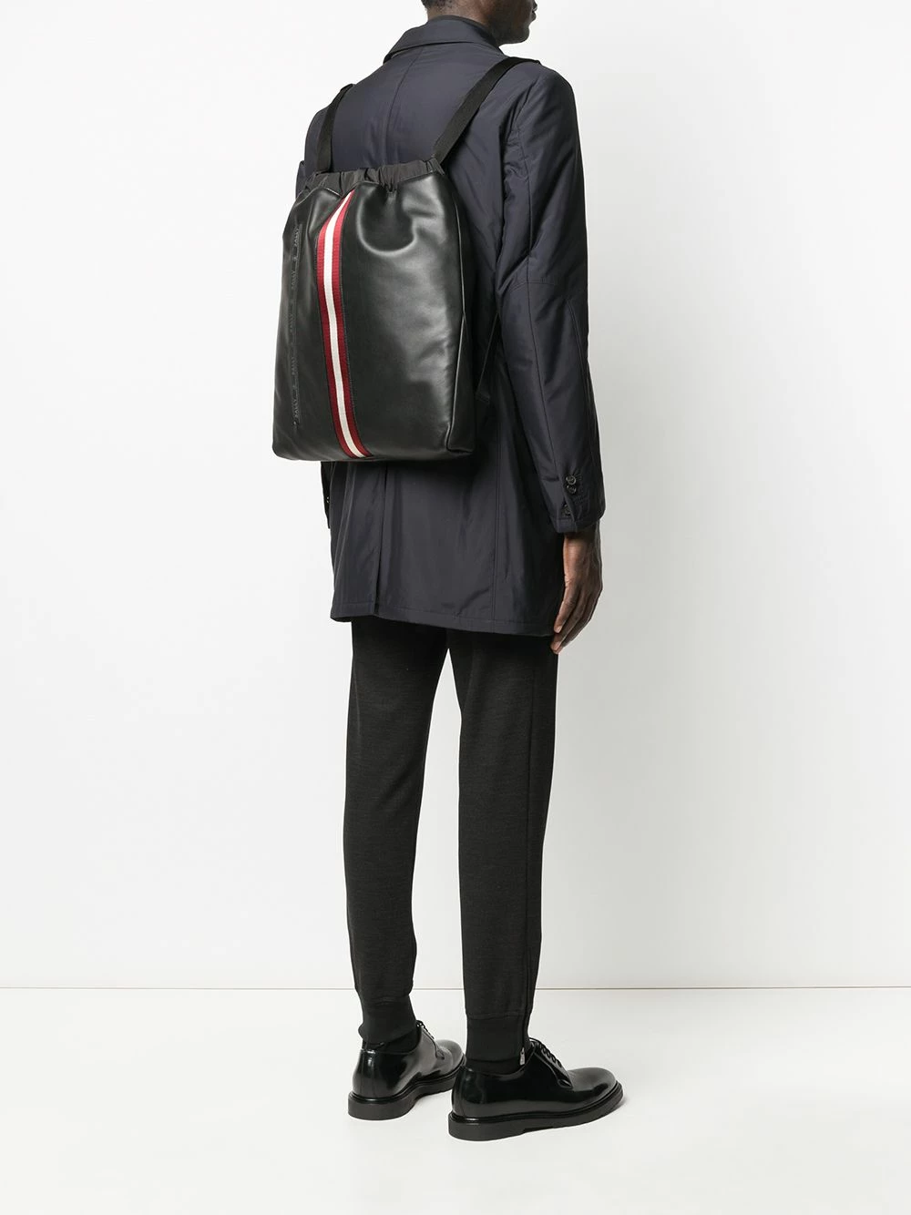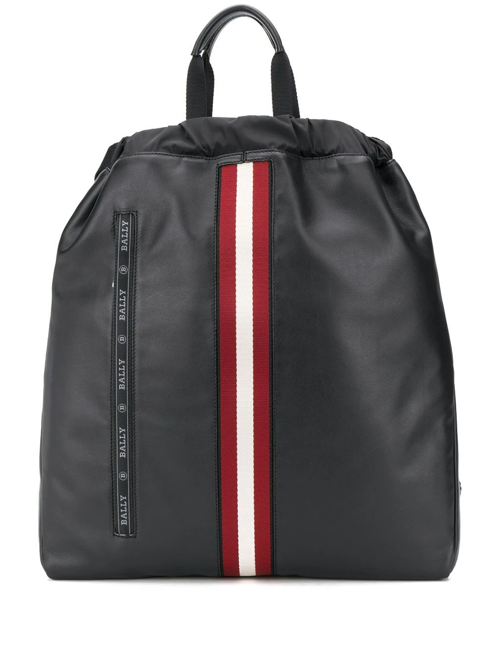 Sac à dos à bande rayée Bally avec motif de rayures, broderies, anses arrondies, patch logo intérieur, poche intérieure zippée et bretelles ajustables.