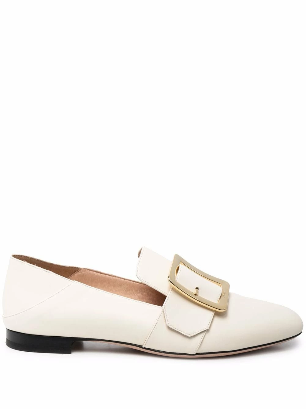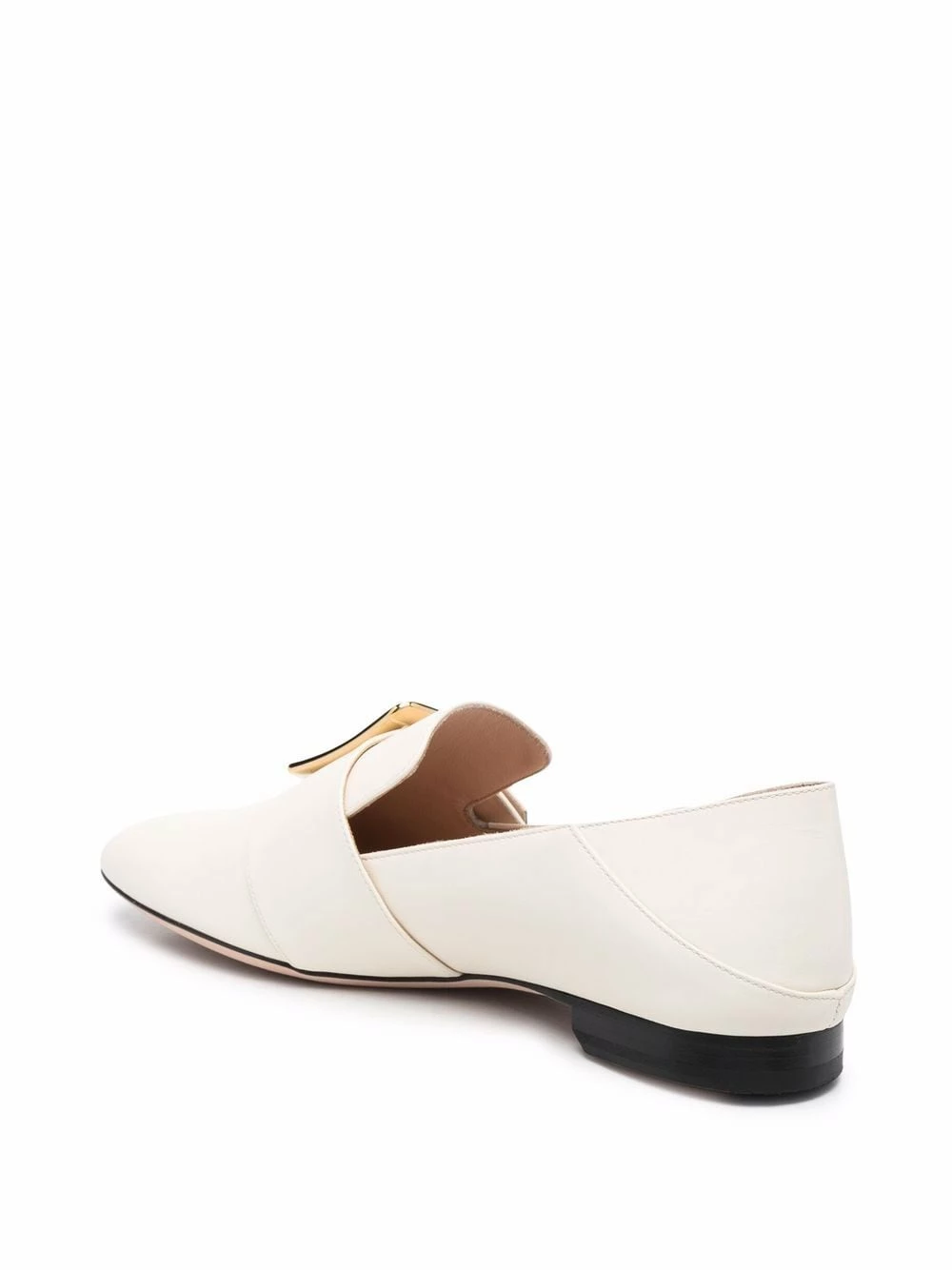 Finitions à boucle décorative, talon repliable, design à enfiler, bout en amande, semelle intérieure griffée, petit talon épais. Matière : cuir.