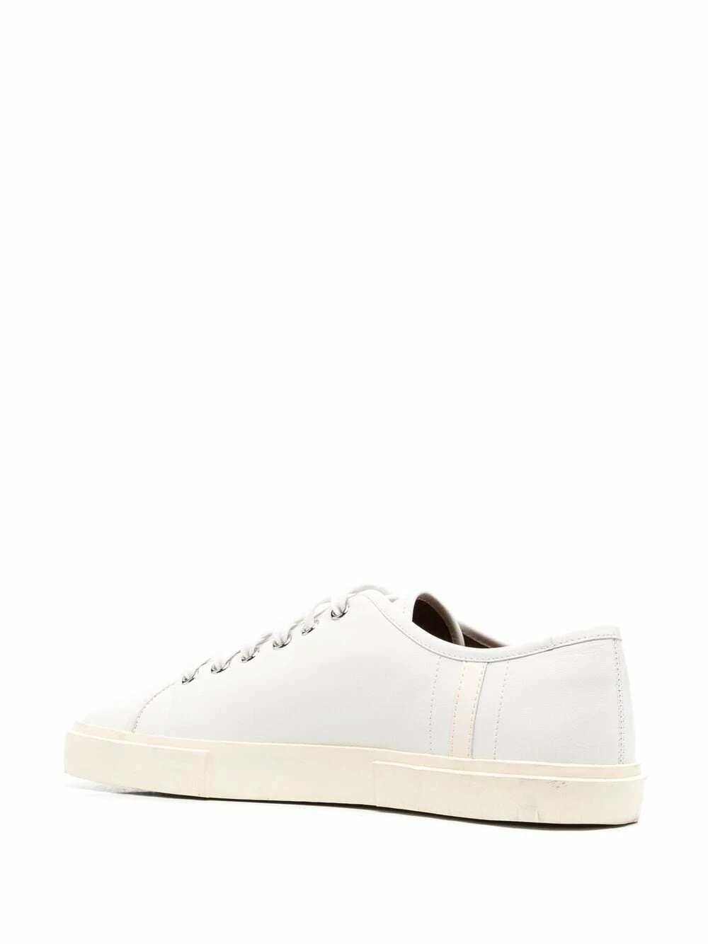 Fermeture à lacer sur le devant, bout rond. Couleur : blanc. Matière : cuir.