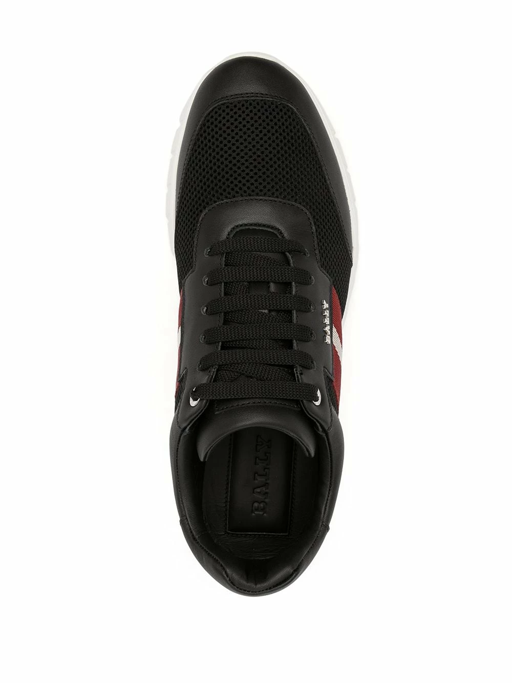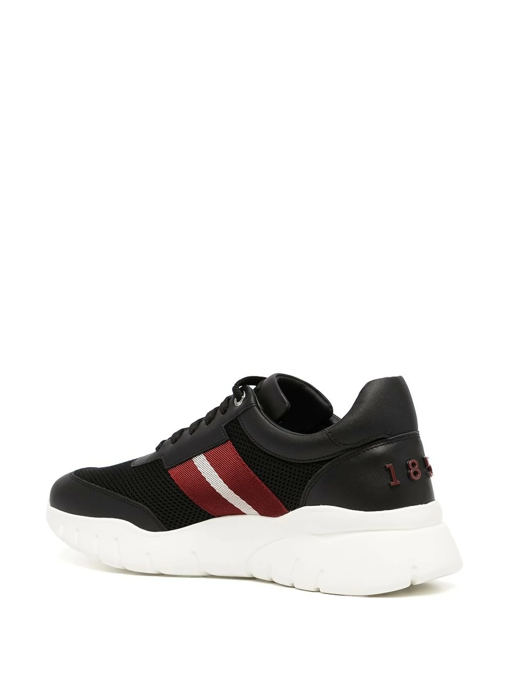 Triple bande signature, bout rond, fermeture à lacer sur le devant, semelle intérieure à logo, semelle plate en caoutchouc. Couleur : noir. Matière : cuir.