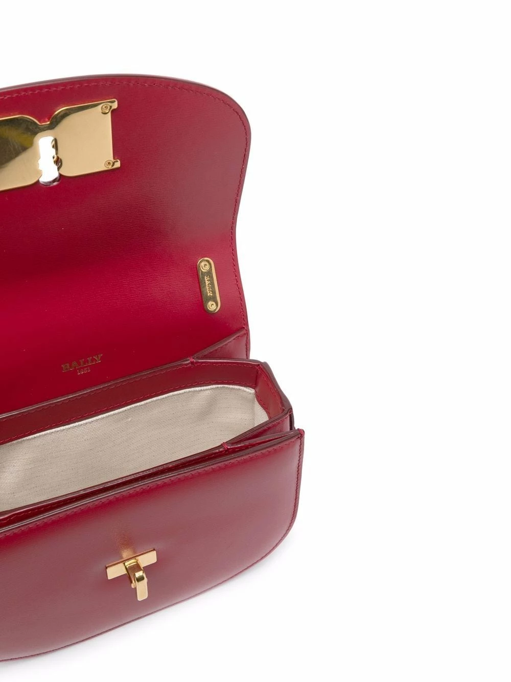 Plaque logo dorée, rabat sur le dessus à fermeture magnétique, bride porté épaule ajustable, compartiment principal, poche plaquée sur le devant. Matière : cuir de veau.