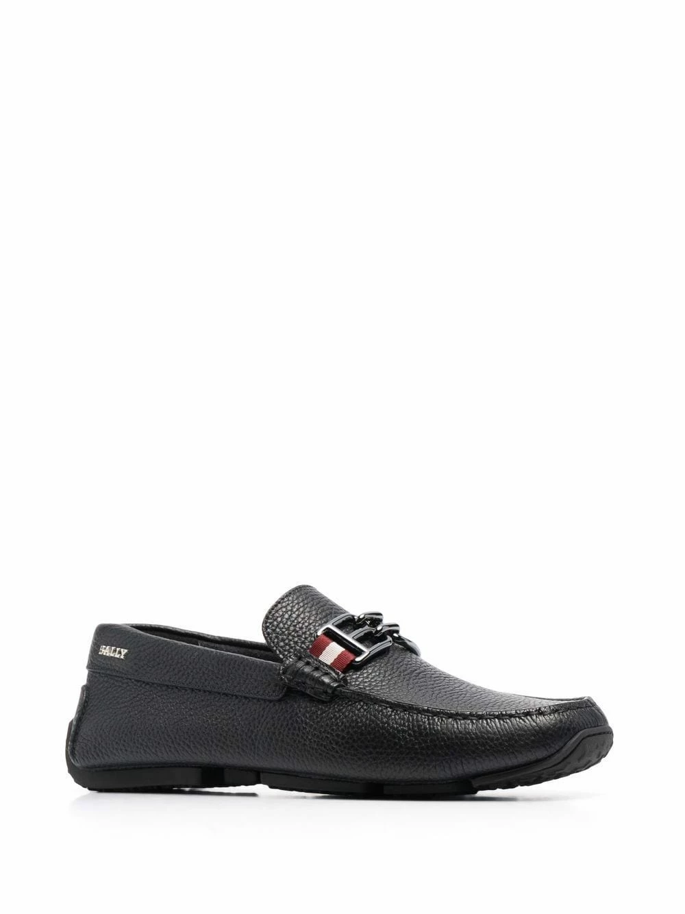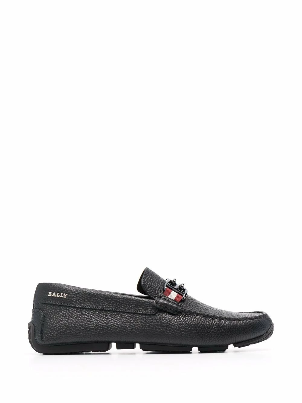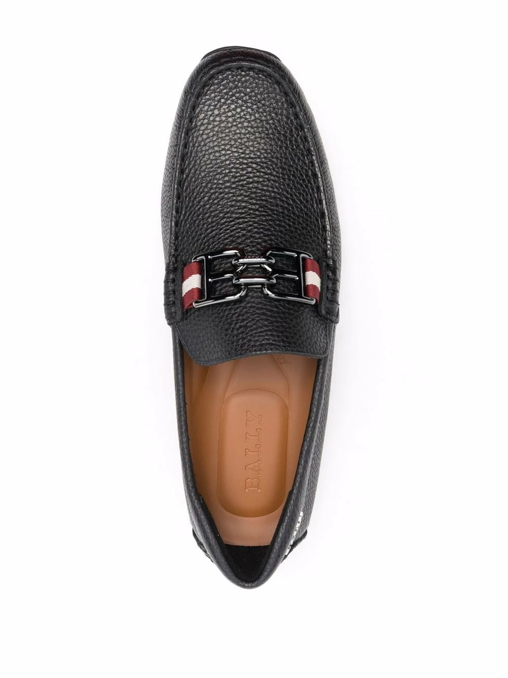Plaque logo, bout rond, design à enfiler, semelle intérieure à logo, semelle plate. Couleur : noir. Matière : cuir.