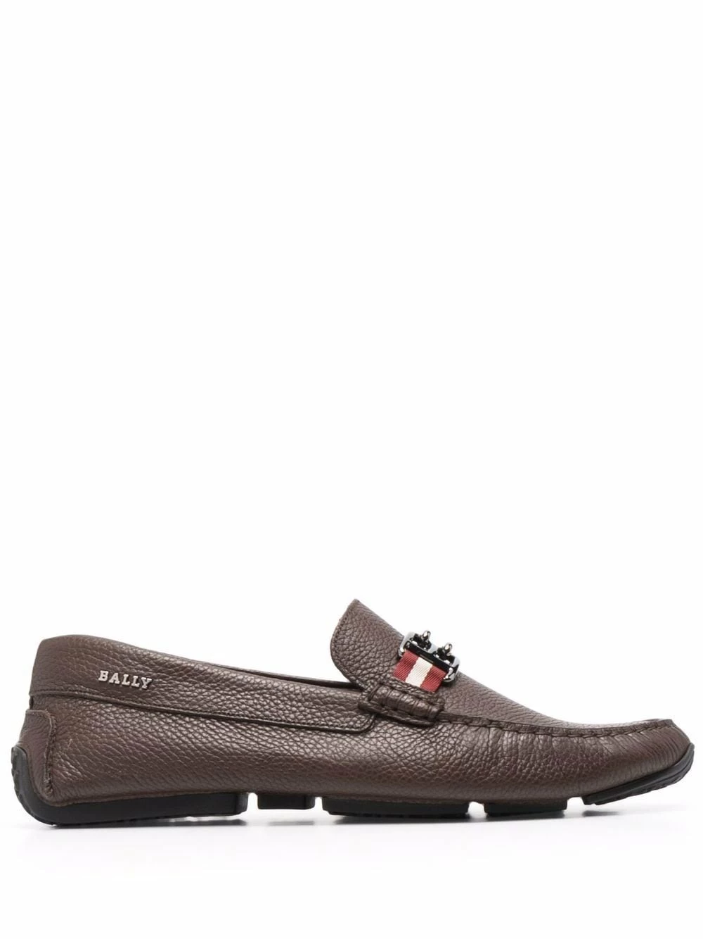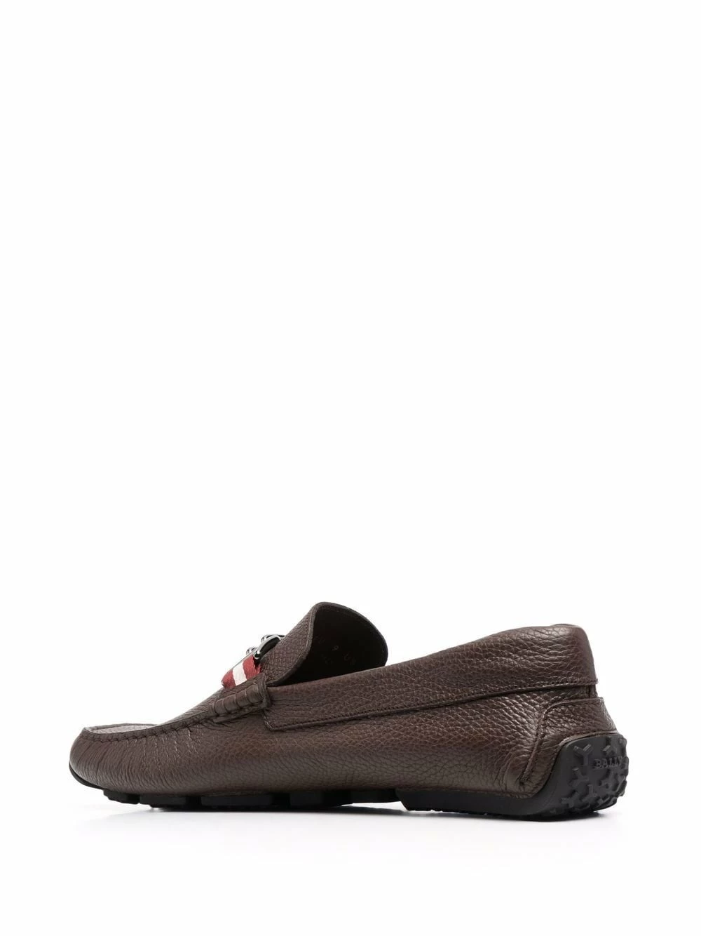 Bout rond, plaque logo dorée, semelle intérieure à logo, semelle crantée en caoutchouc, design à enfiler. Couleur : marron. Matière : cuir.