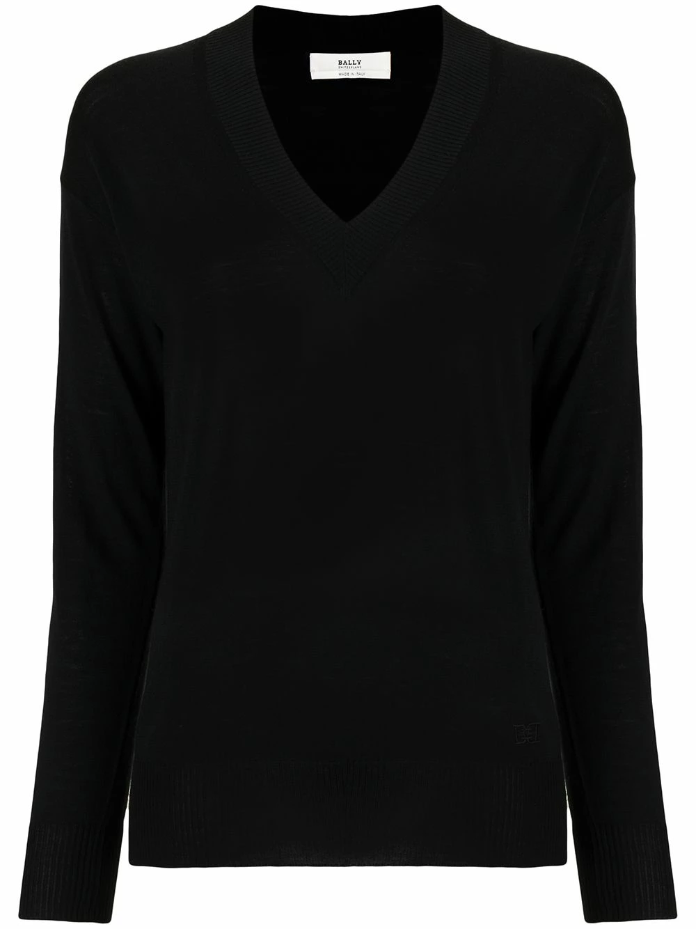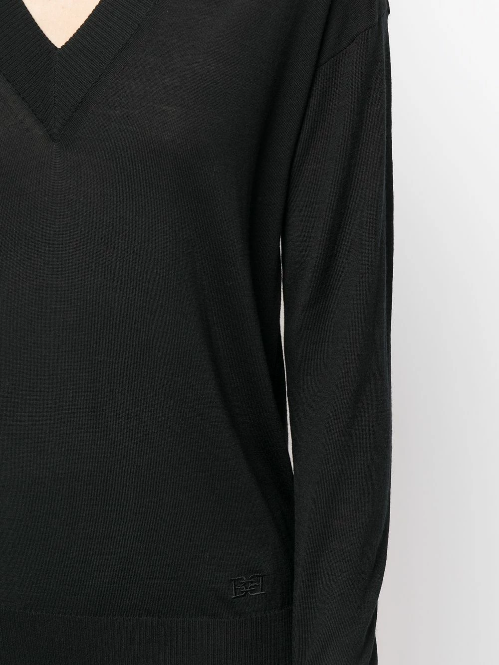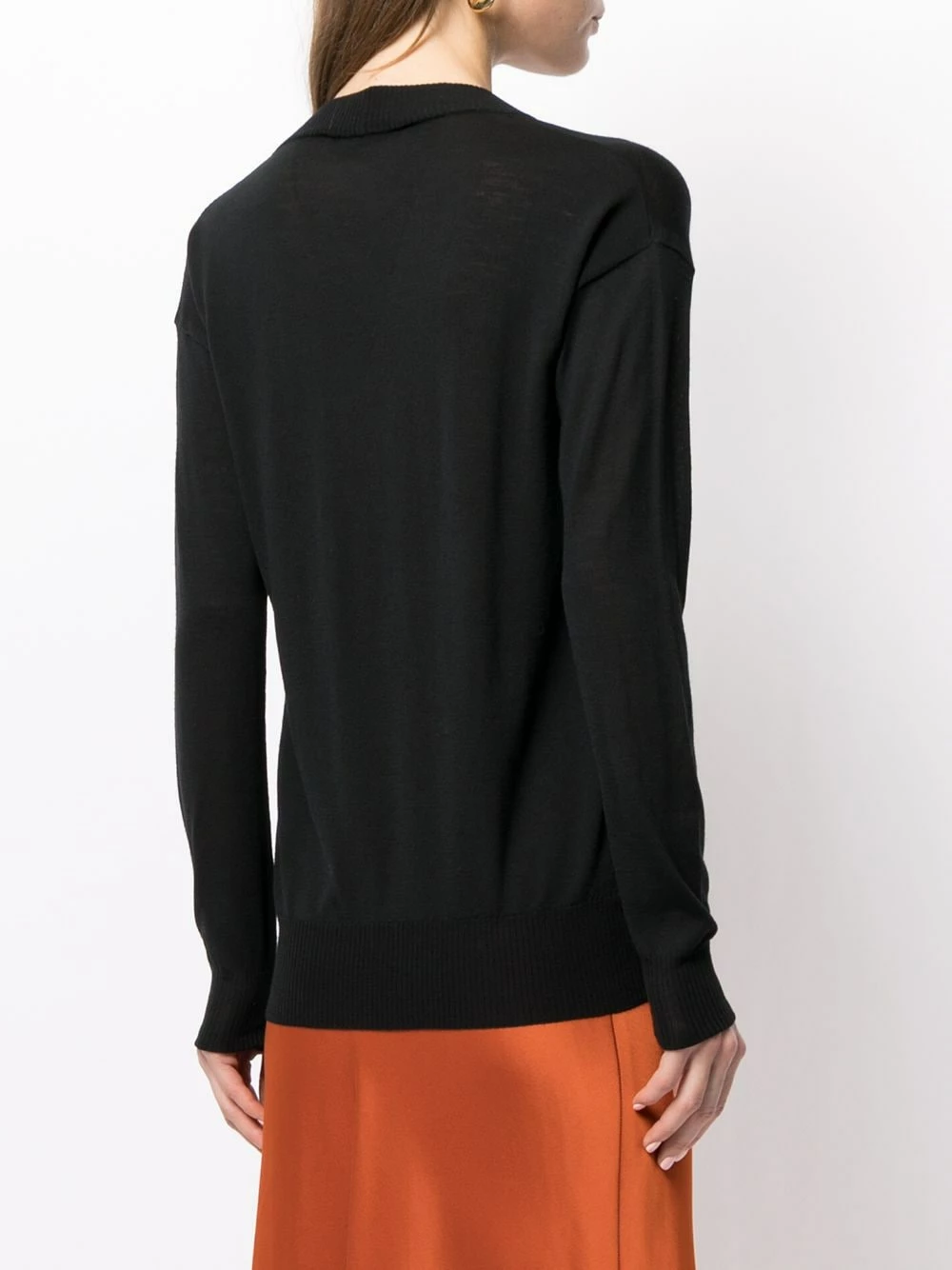 Bord en maille côtelée, ourlet droit, effet d’épaules descendues, manches longues. Couleur : Noir. Matière : laine.