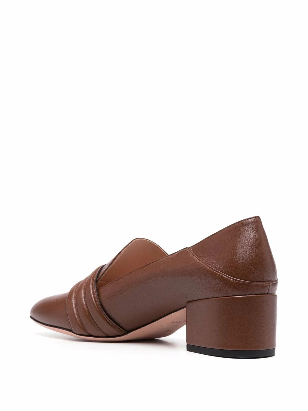 Bout en amande, design à enfiler, semelle intérieure à logo, petit talon épais. Matière : cuir.