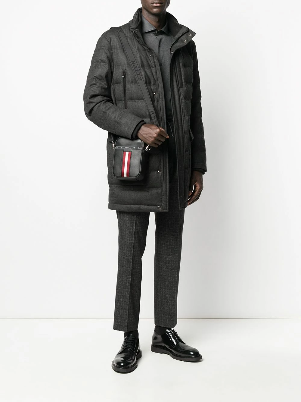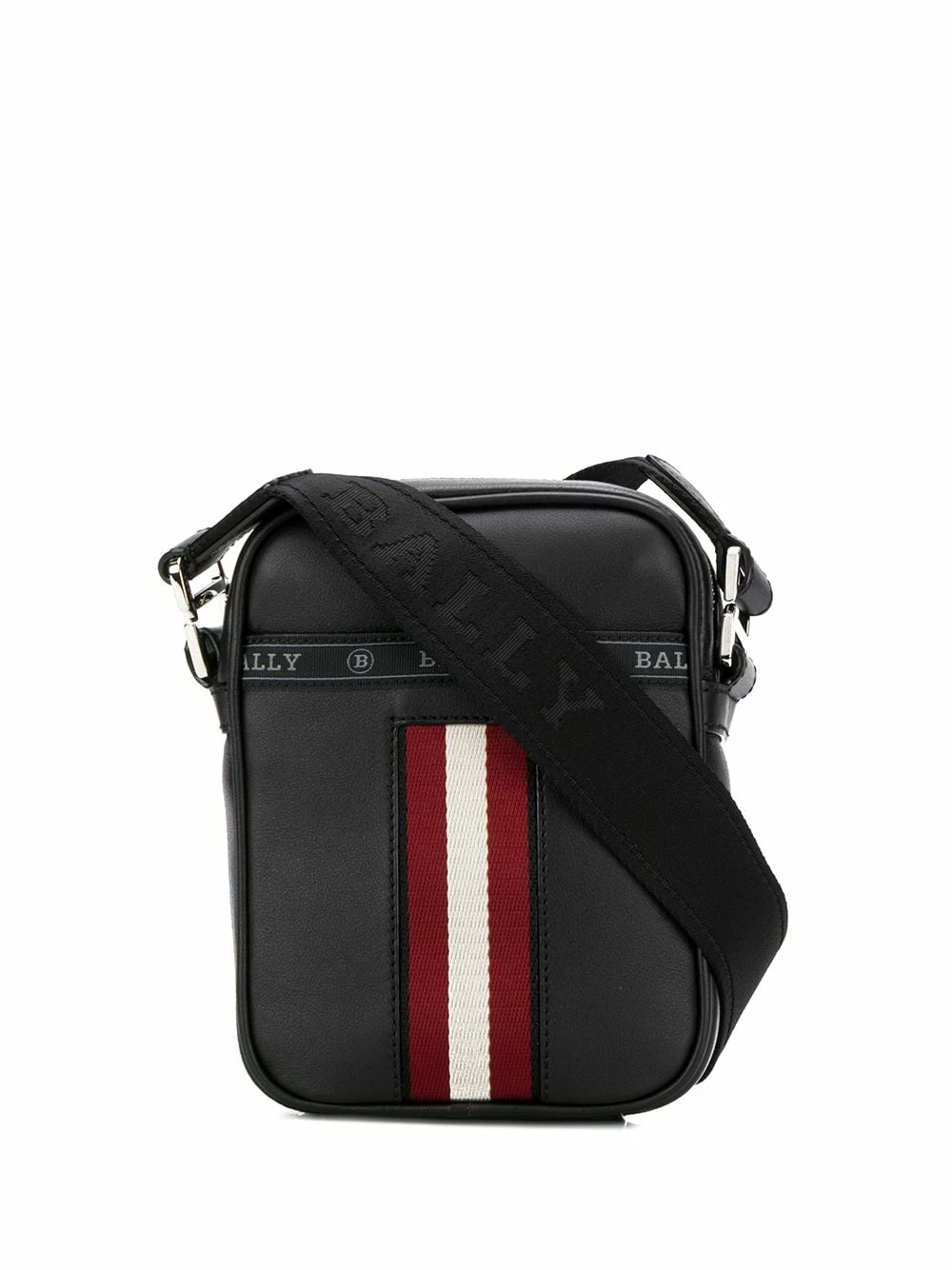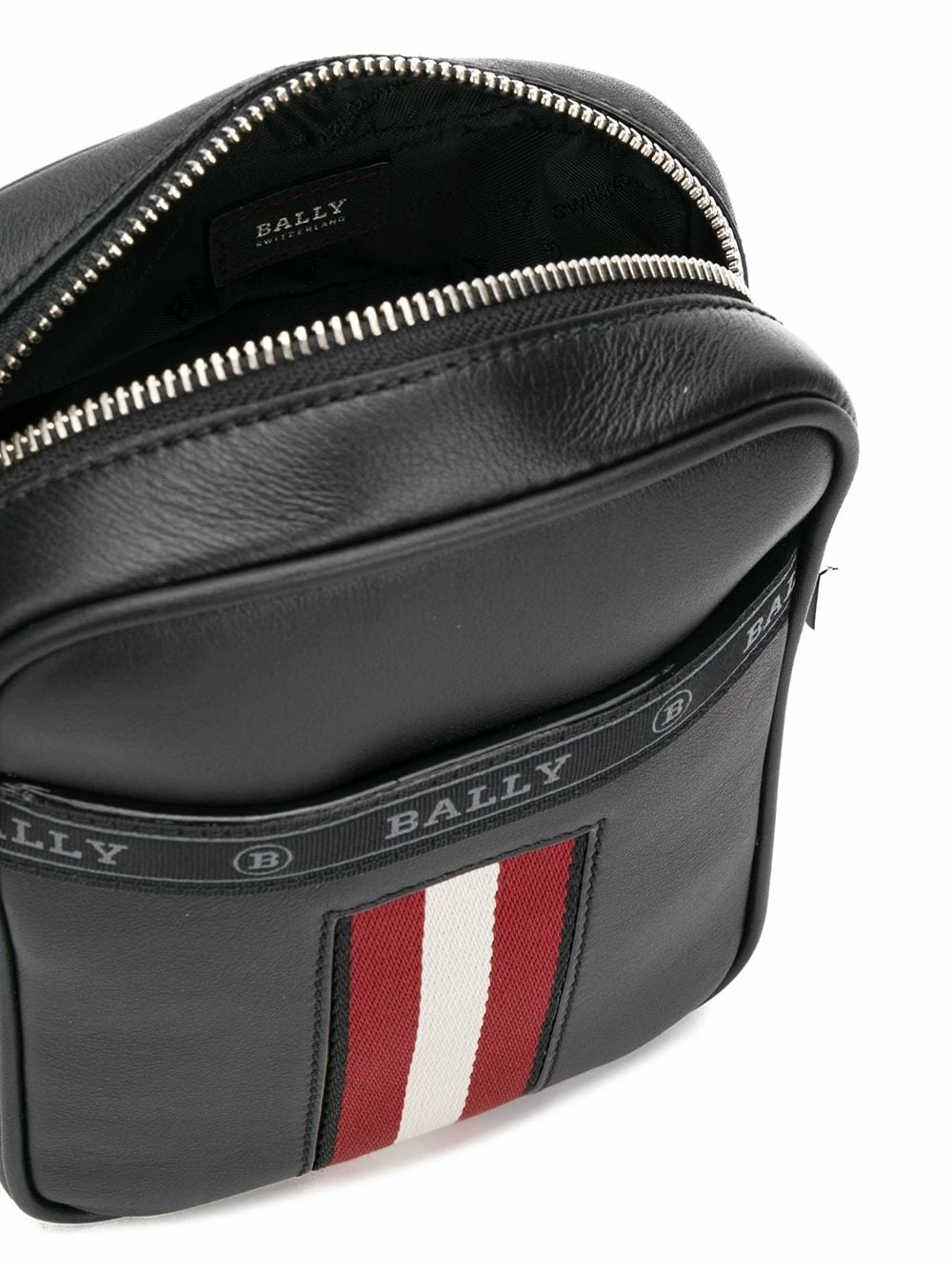 Sac à bandoulière à détail rayé Bally avec rayures verticales, logo brodé sur le devant, bride portée épaule ajustable, patch logo intérieur et fermeture zippée.