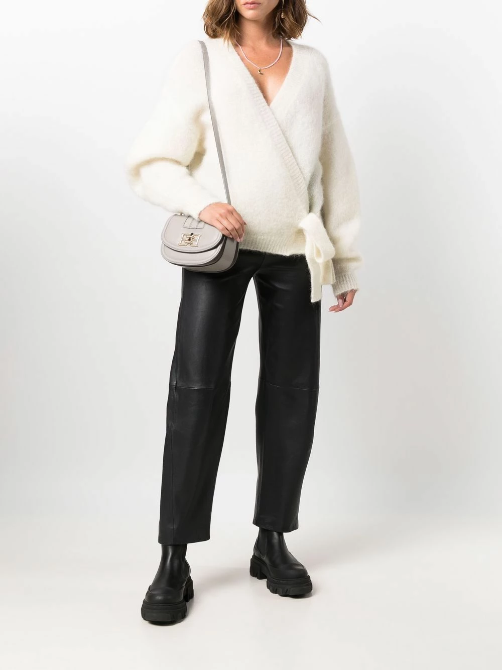 Plaque logo dorée, rabat sur le dessus, bride porté épaule ajustable, compartiment principal. Matière : cuir.