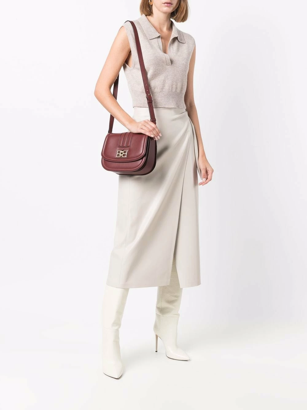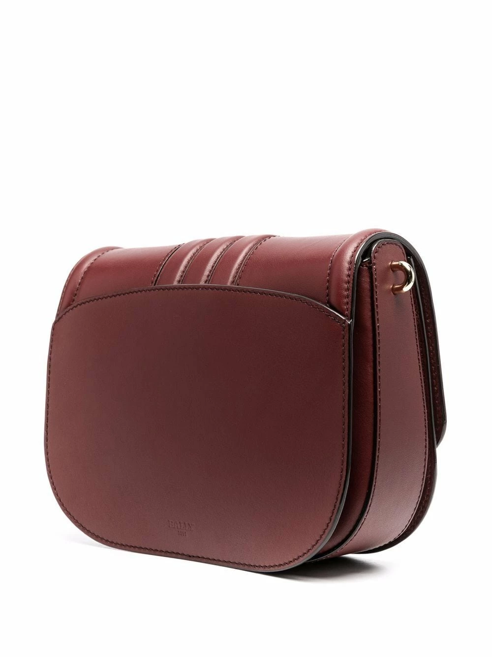 Effet matelassé, rabat sur le dessus, plaque logo dorée, coins incurvés. Couleur : rouge. Matière : cuir.