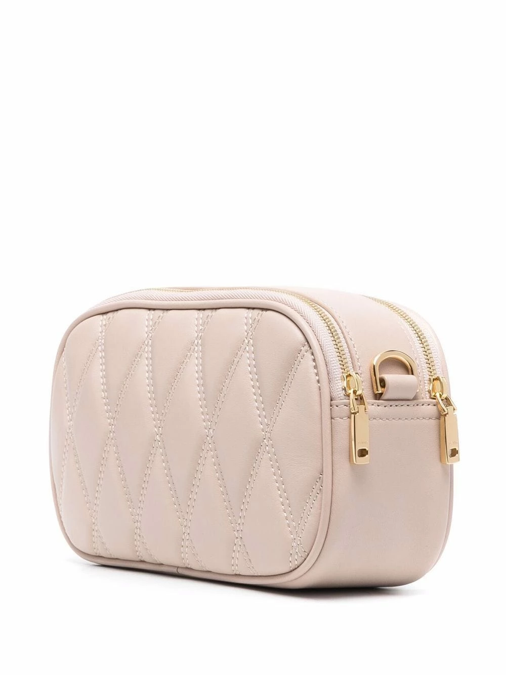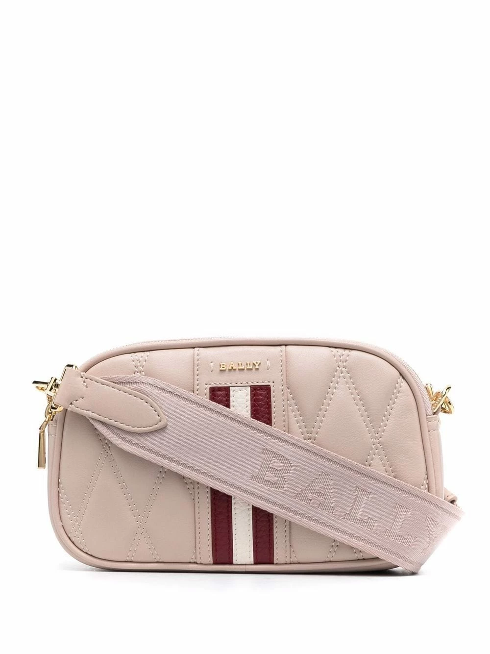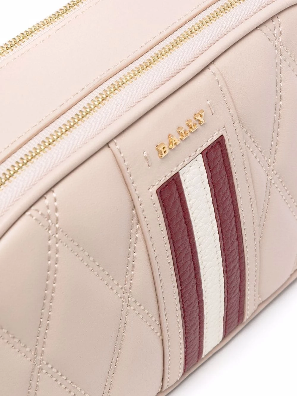 Effet matelassé, détails rayés, plaque logo, fermeture zippée sur le dessus, bride porté épaule à logo. Matière : cuir.