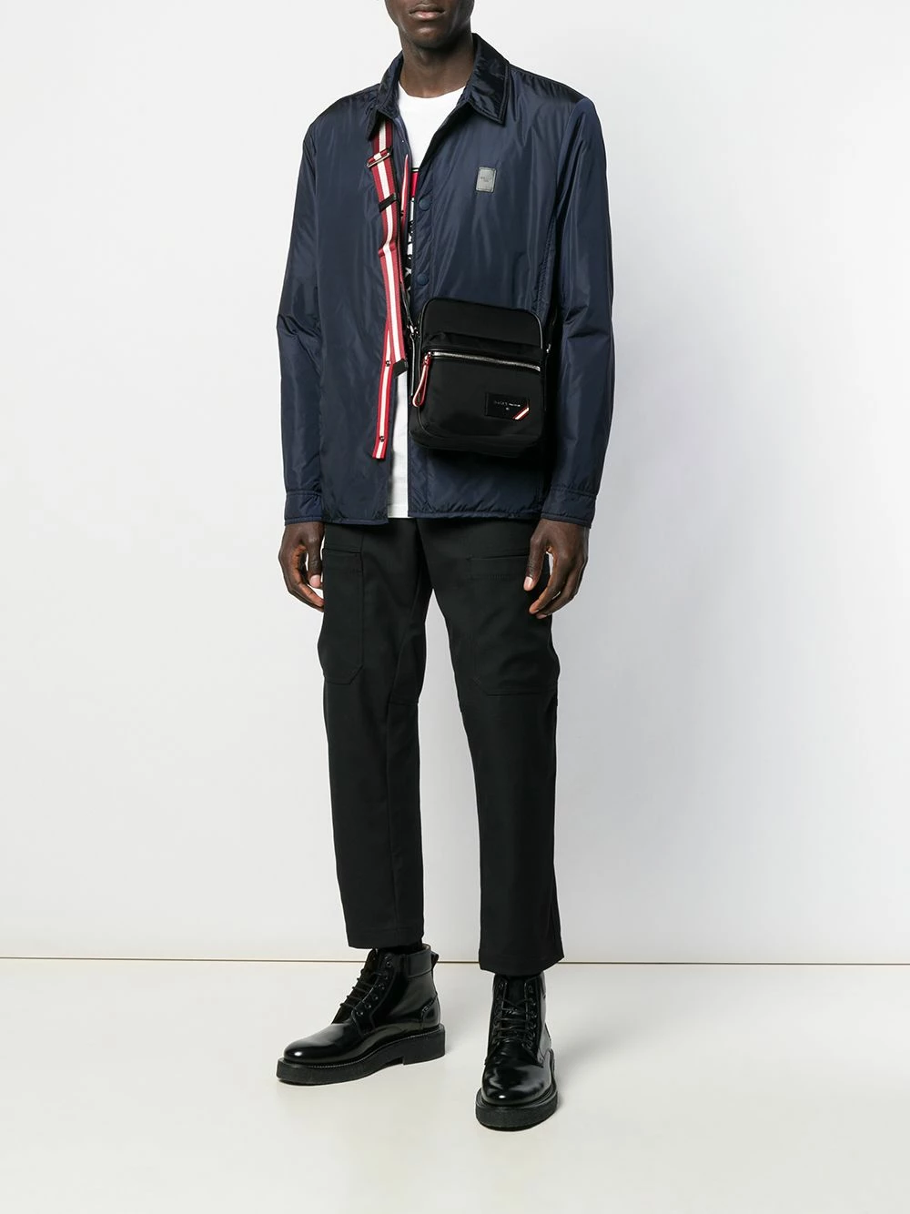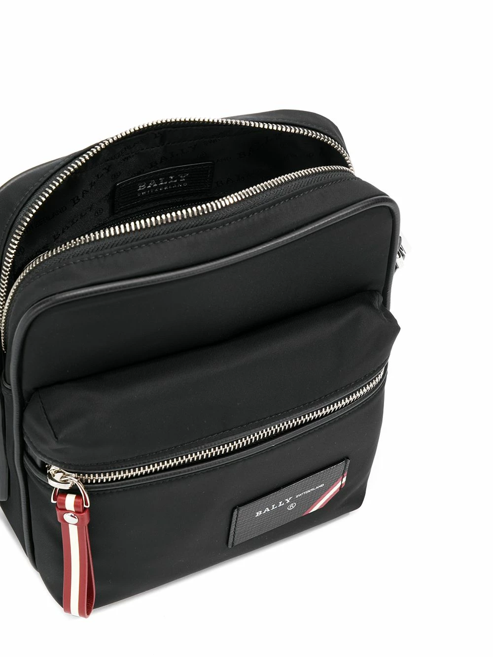 Sac à bandoulière Faara Bally avec bride portée épaule ajustable, fermeture zippée et patch logo intérieur. Couleur : noir.