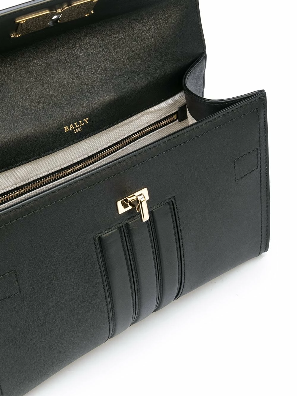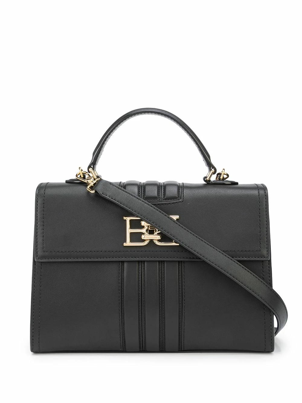 Plaque logo dorée, rabat sur le dessus, fermoir pivotant, logo intérieur embossé, anse arrondie, compartiment principal, poches intérieures zippées, bride porté épaule détachable et ajustable. Couleur : noir. Matière : cuir.