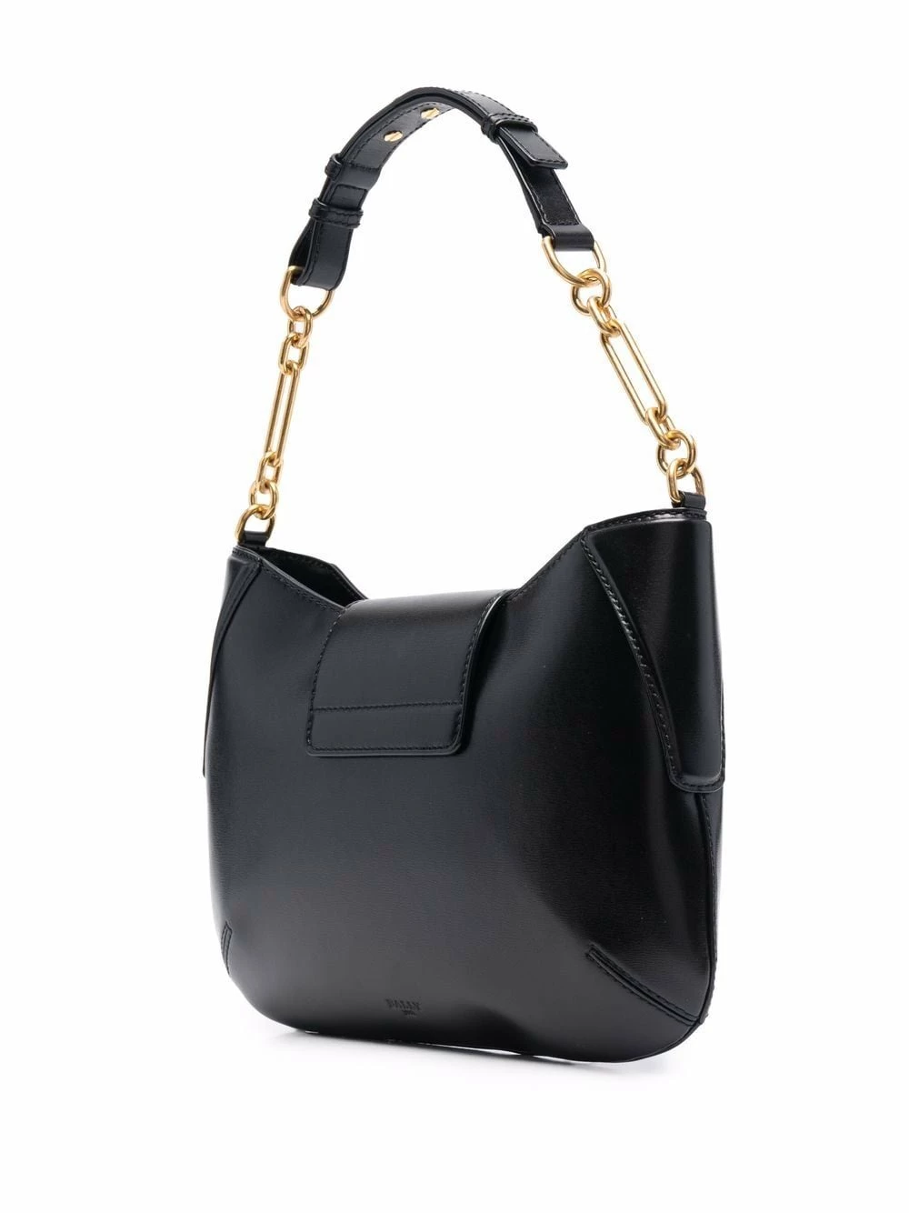 Finitions en métal doré, plaque logo, bride porté épaule en cuir et maillons de chaîne, poche intérieure. Matière : cuir de veau.