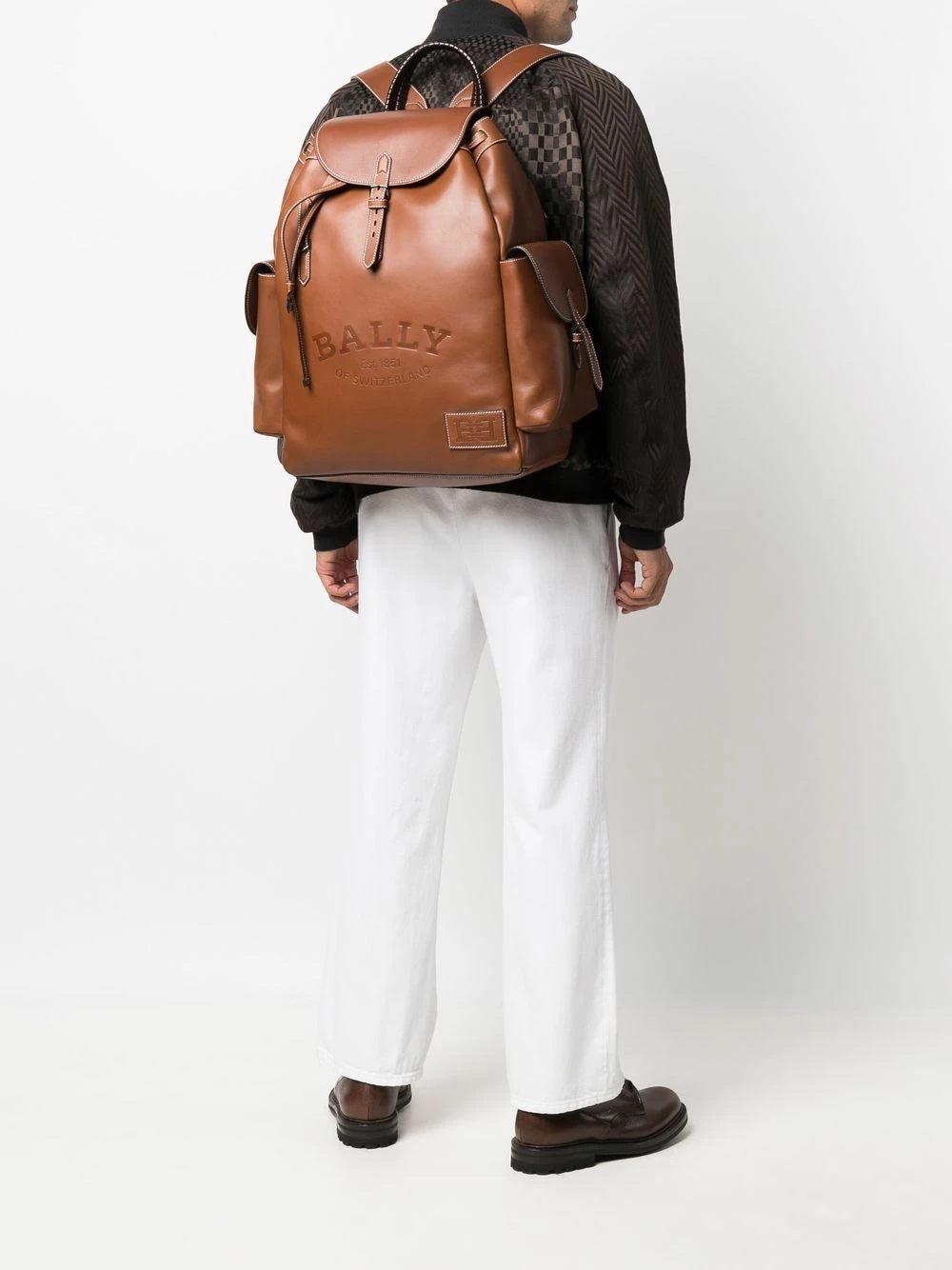 Marron, cuir de veau, logo embossé sur le devant, fermeture à boucle sur le devant, compartiment principal, brides porté épaule ajustables.