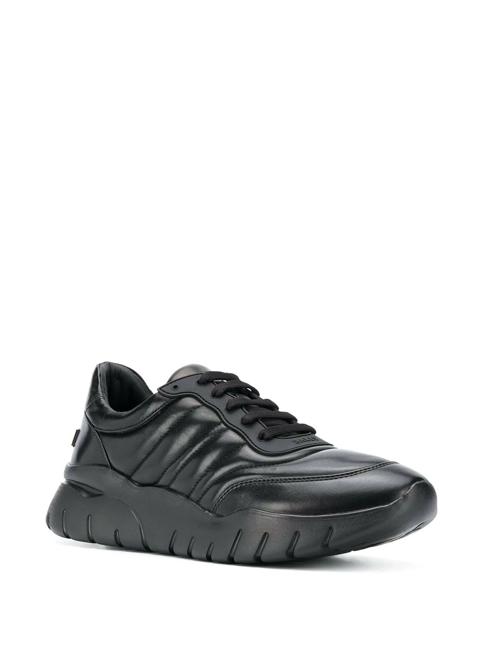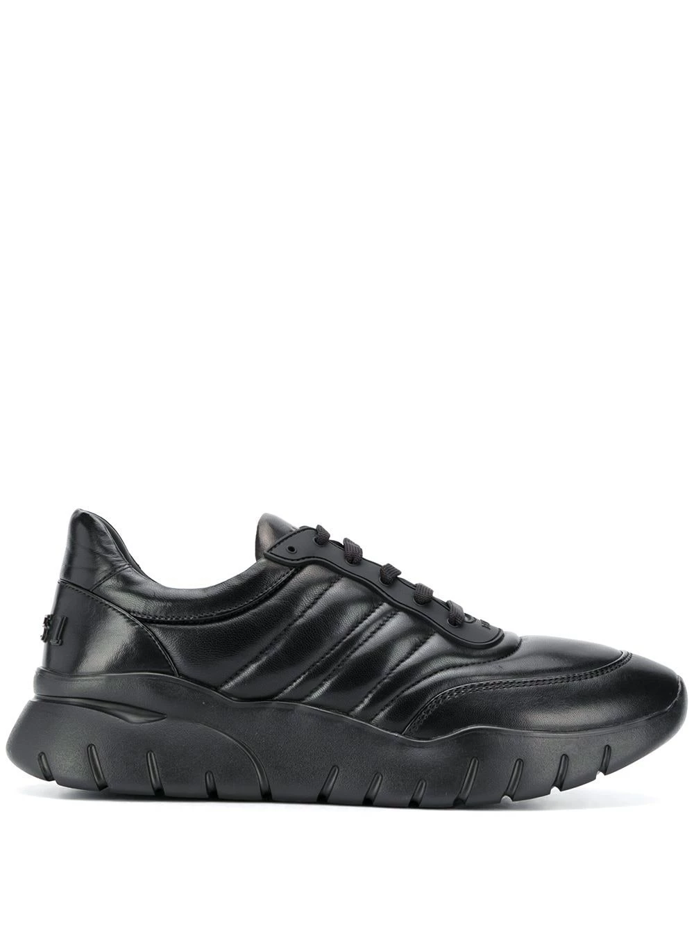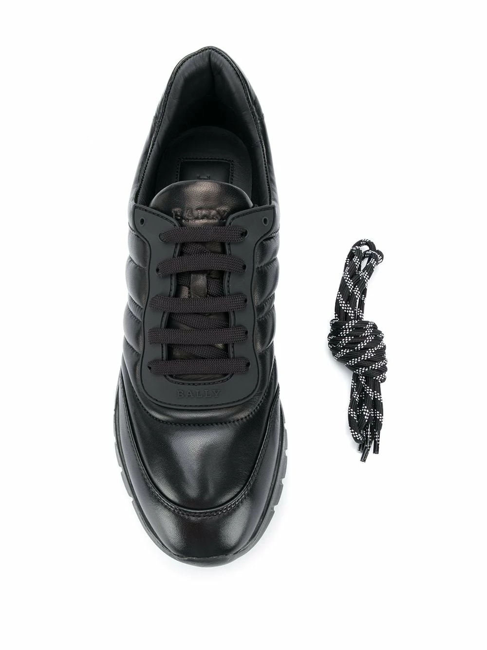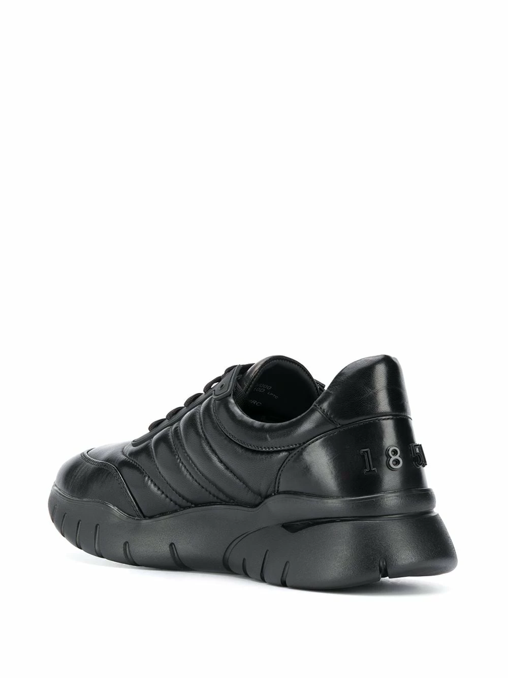 Coutures ton sur ton, bout rond, fermeture à lacer sur le devant, semelle crantée en caoutchouc. Couleur : noir. Matière : cuir.