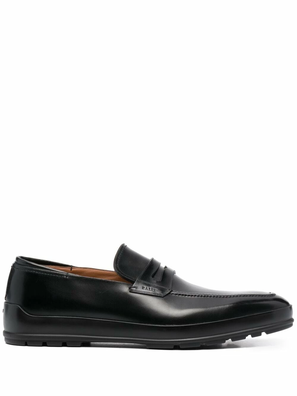 Bout en amande, entaille penny, semelle intérieure griffée, semelle en caoutchouc, design à enfiler. Matière : cuir.