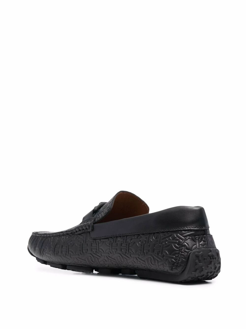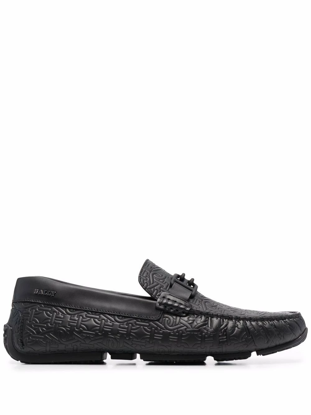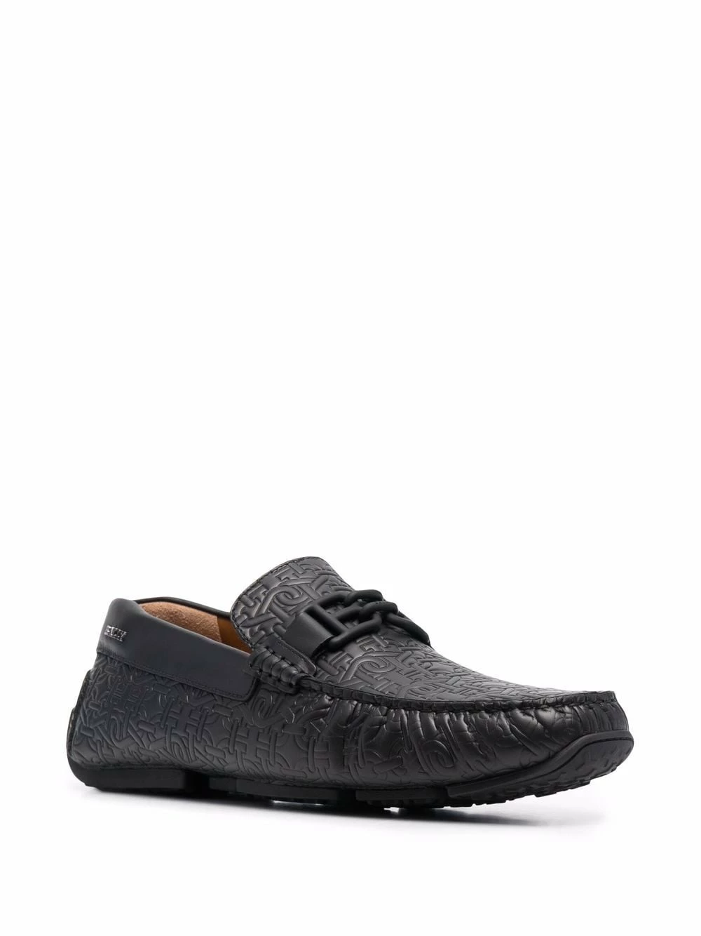 Plaque logo, design à enfiler, bout rond, semelle plate en caoutchouc. Matière : cuir.