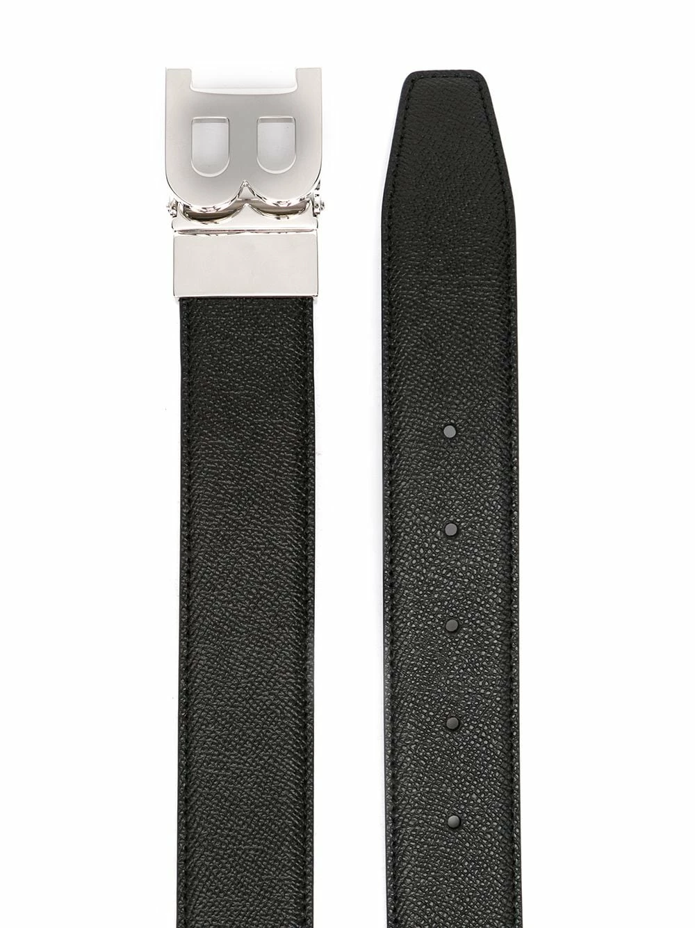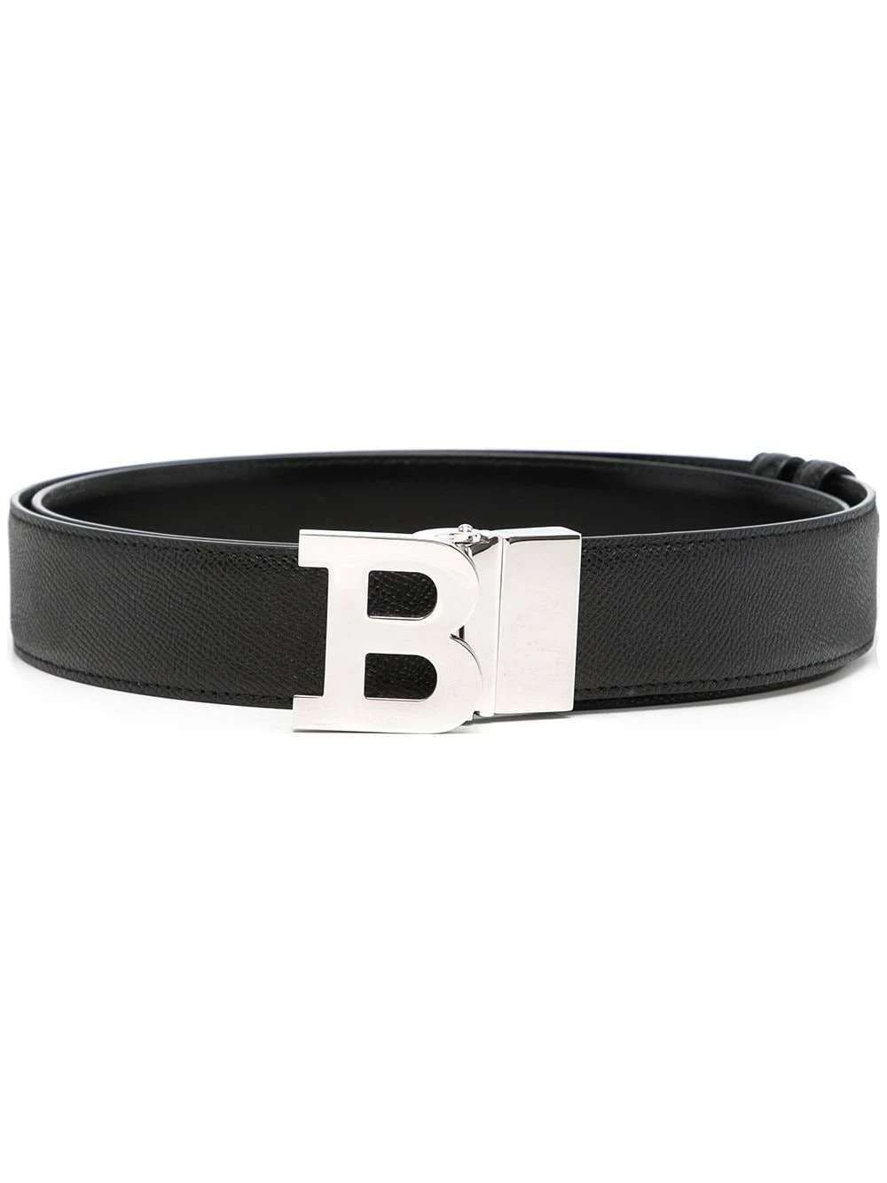 Taille ajustable, fermeture à boucle argentée, logo argenté. Couleur : noir. Matière : cuir.