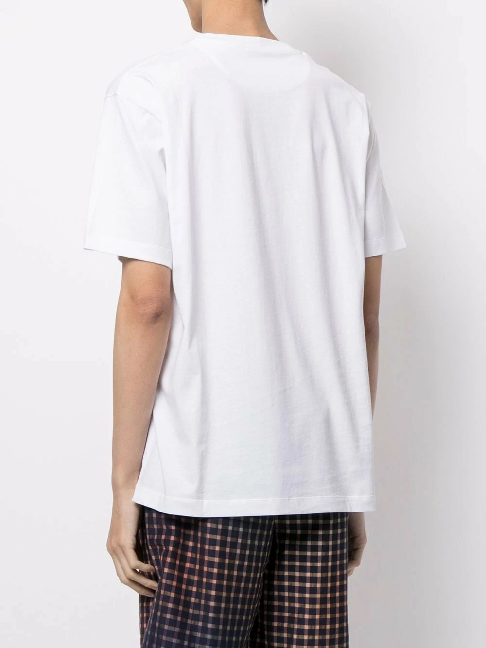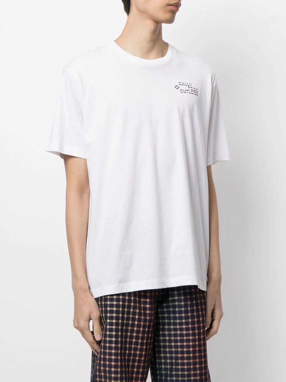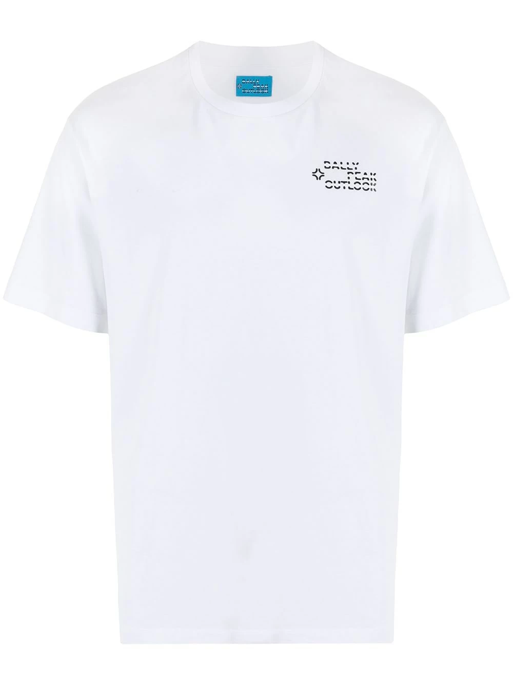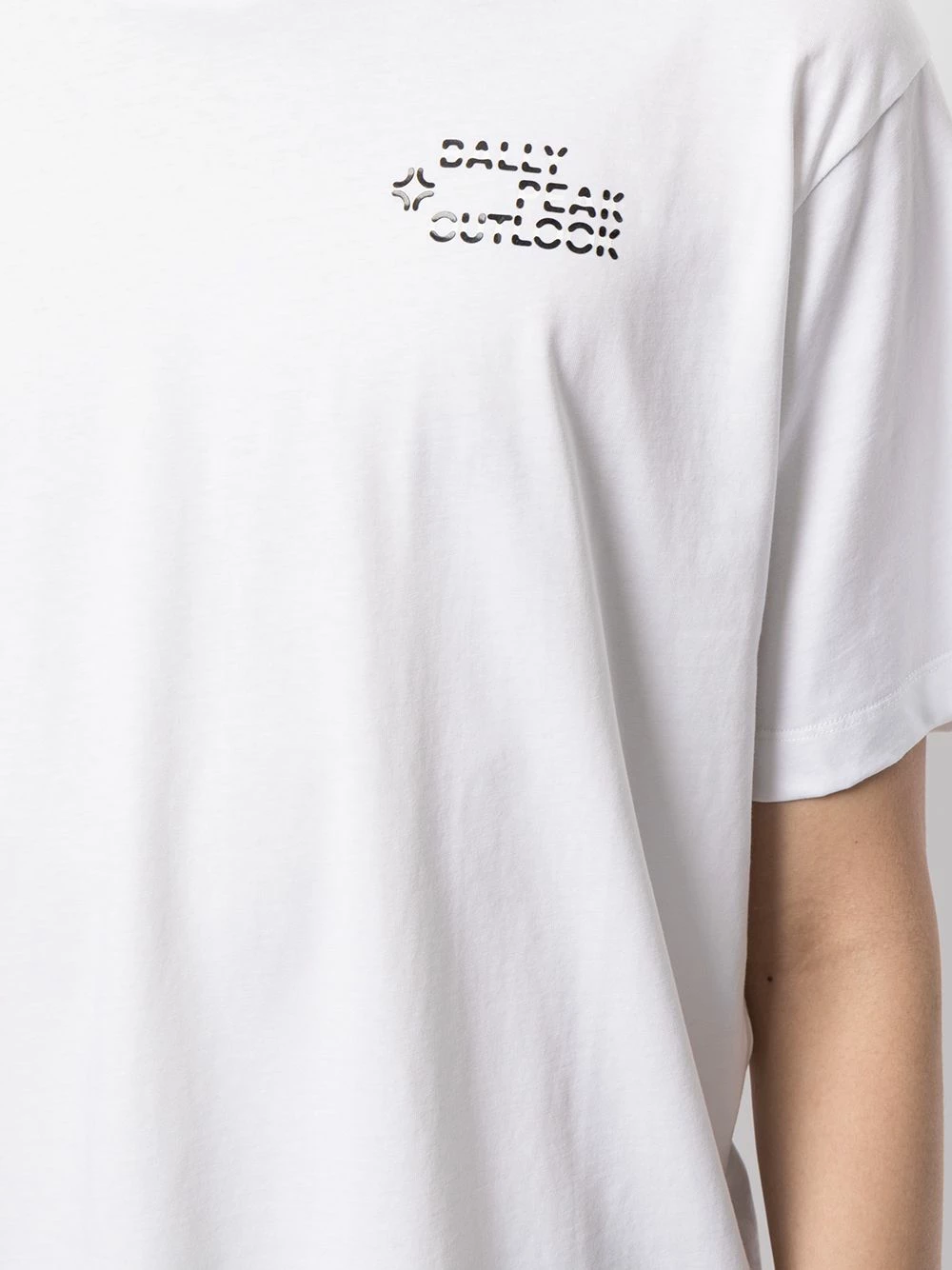 Logo imprimé à la poitrine, encolure ras du cou, manches courtes, ourlet droit. Couleur : Blanc. Matière : coton.