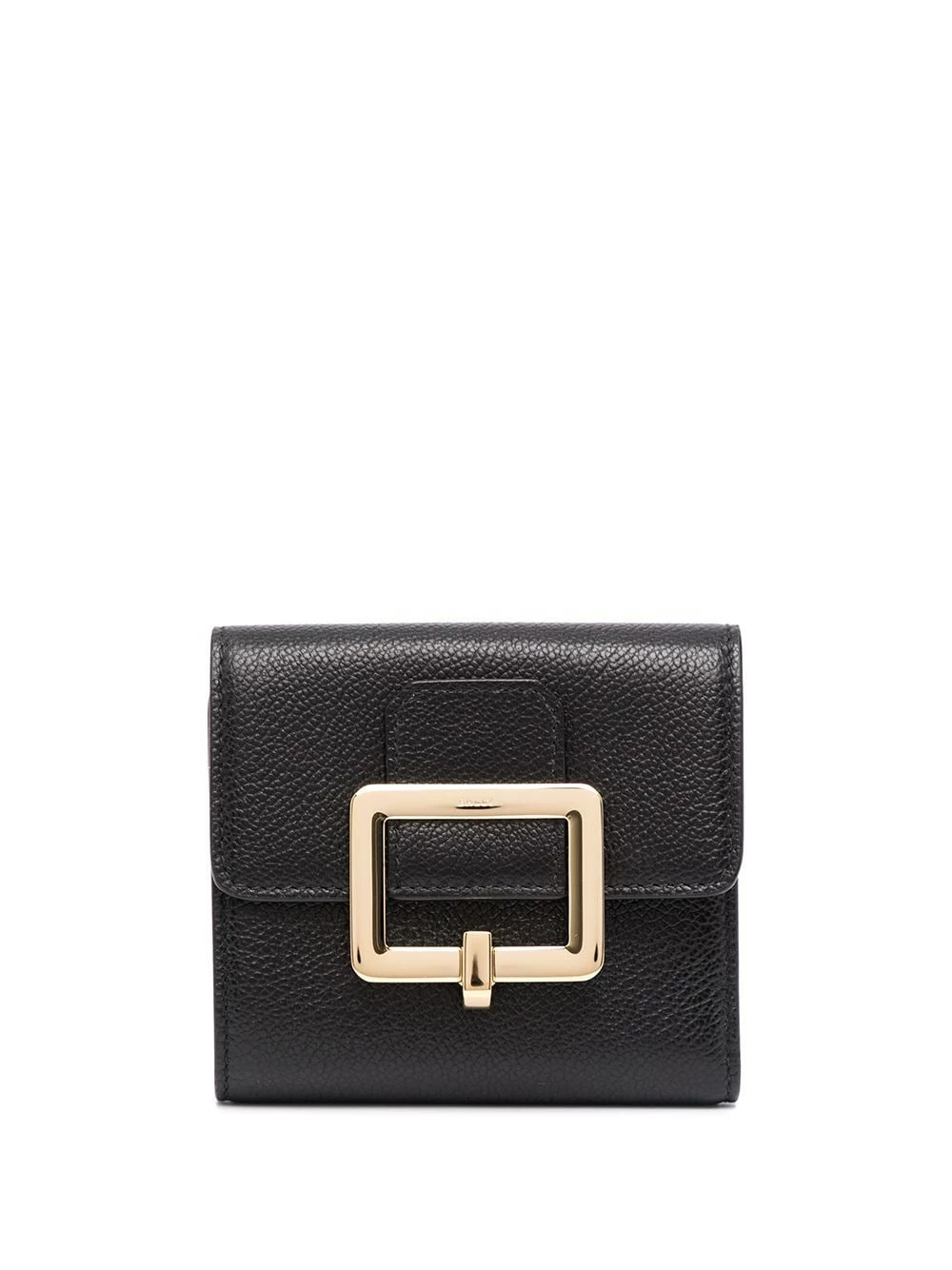 Design pliant, détail de boucle décorative, poche intérieure zippée, compartiments intérieurs pour carte. Couleur : noir. Matière : cuir.