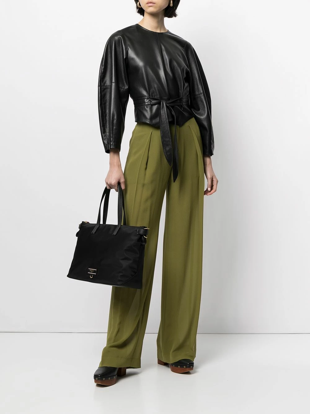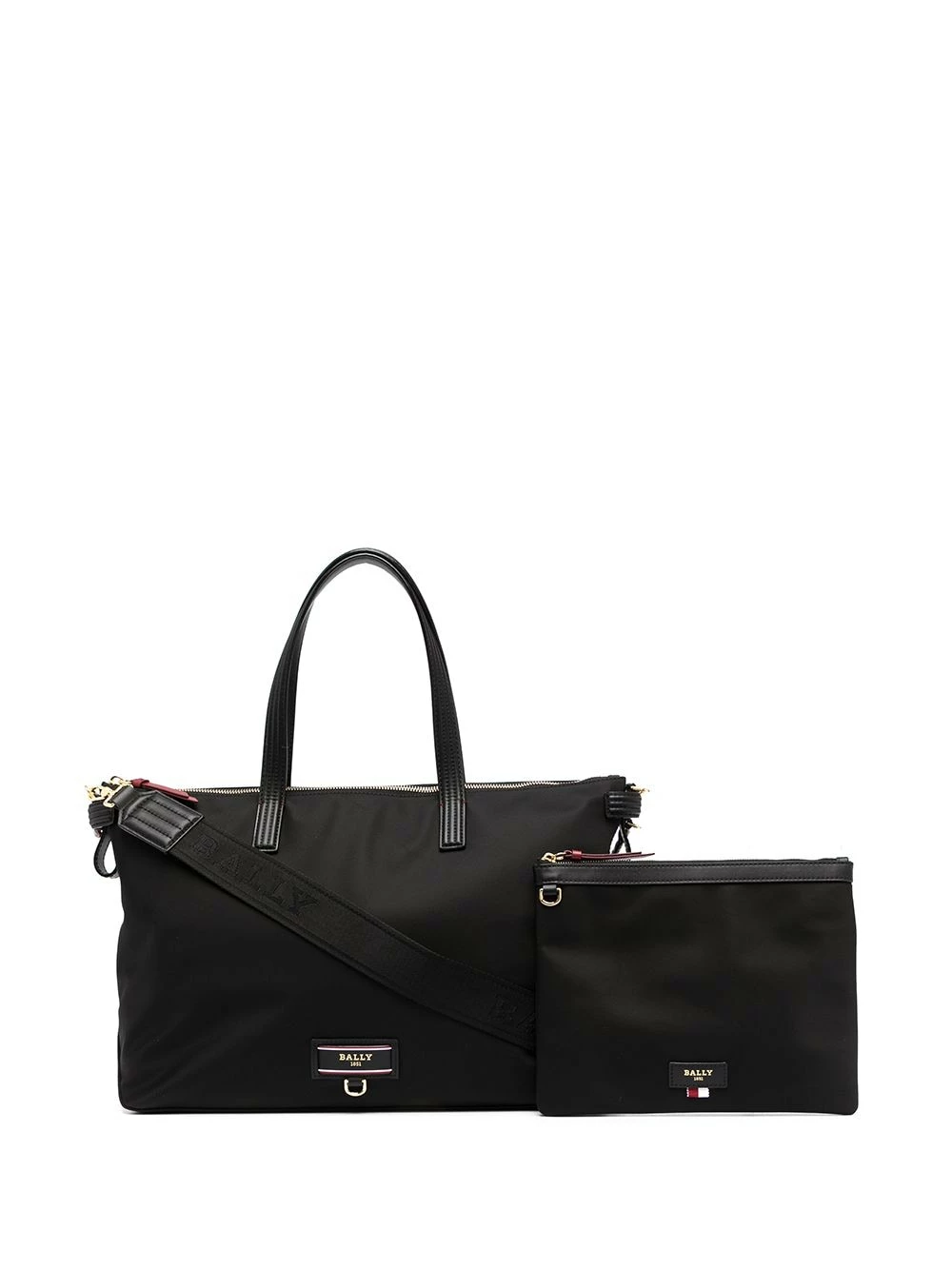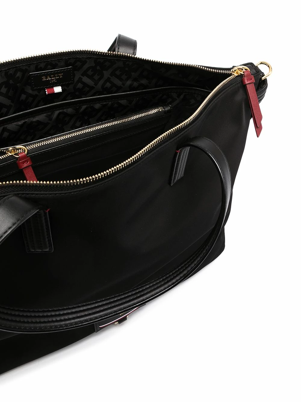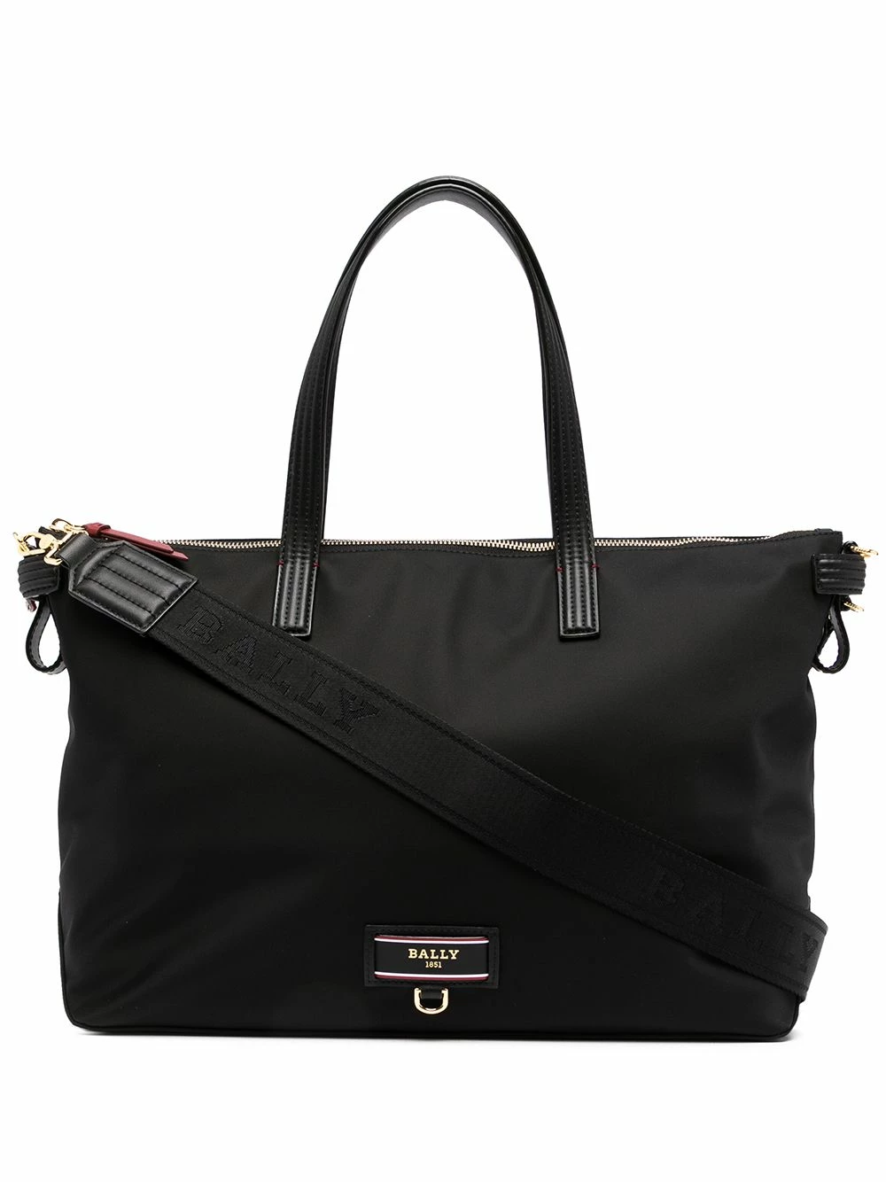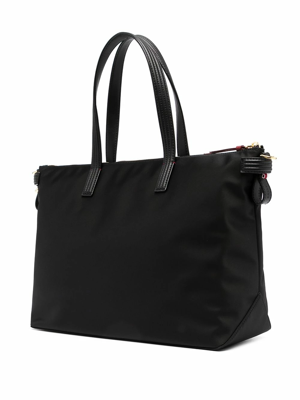Anses sur le dessus, bride porté épaule à logo, compartiment principal, fermeture zippée sur le dessus, finitions en métal doré, poche intérieure zippée. Couleur : noir. Matière : cuir.