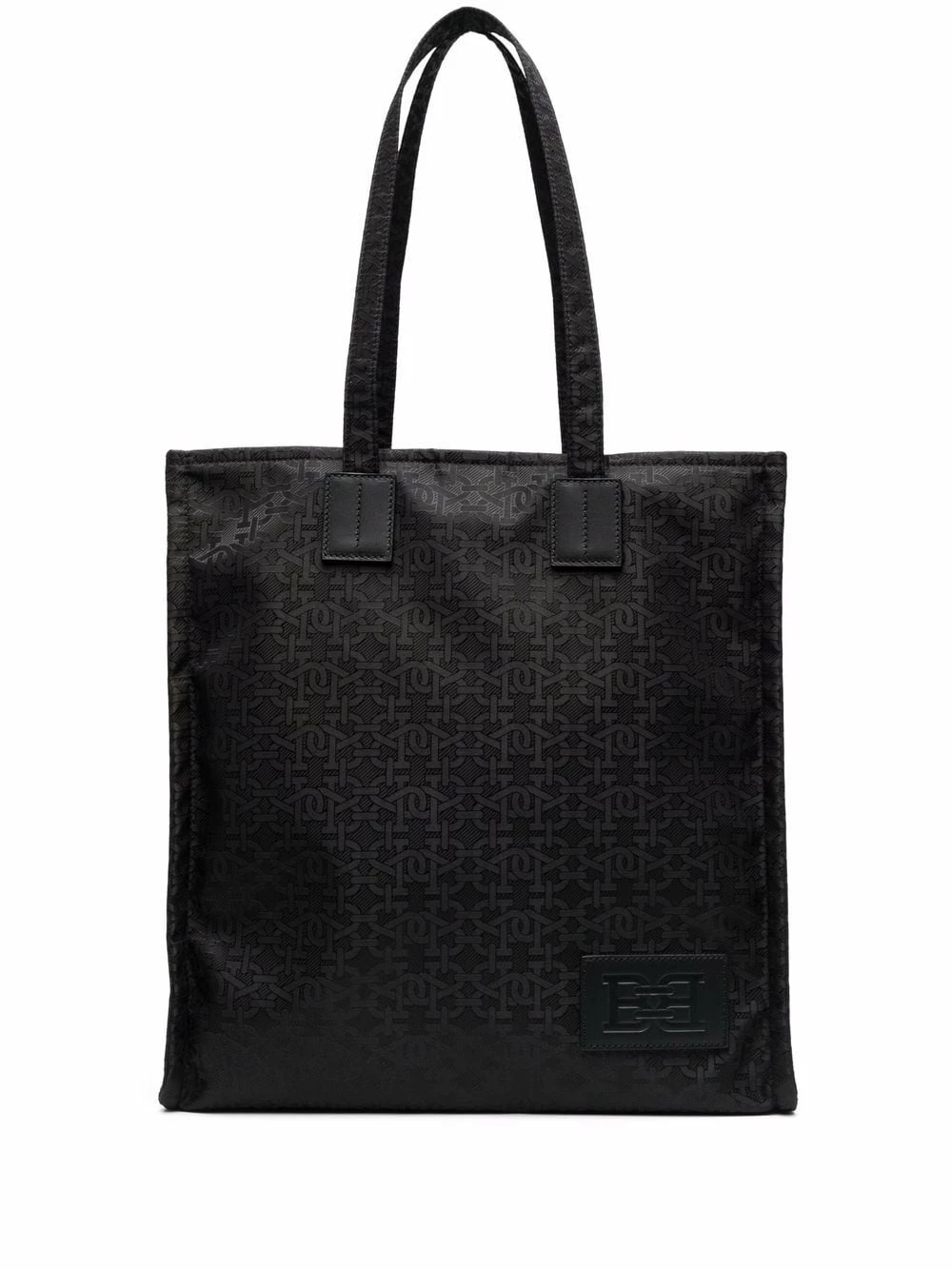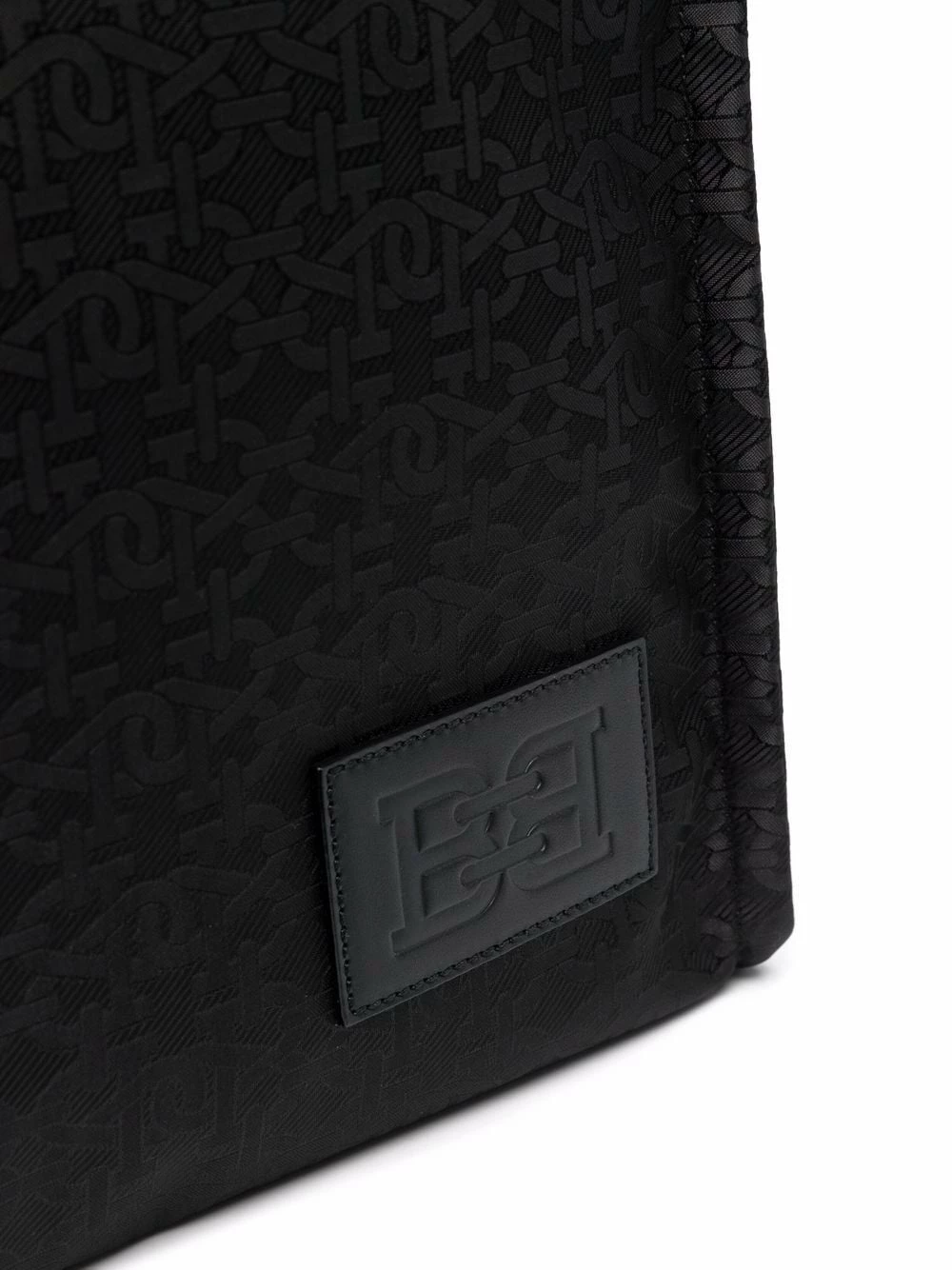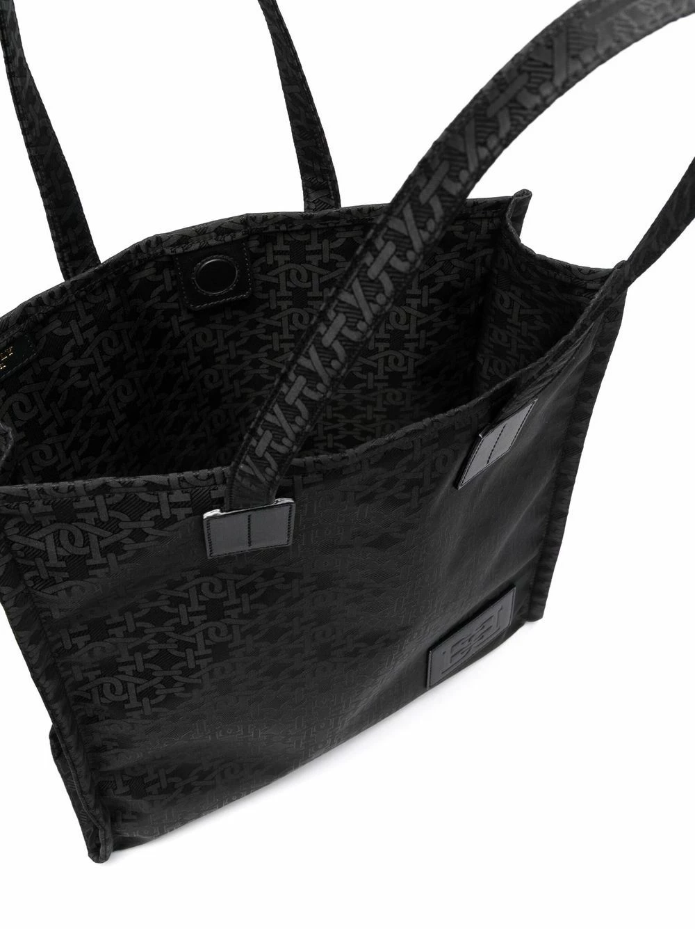 Imprimé monogrammé, patch logo sur le devant, compartiment principal, fermeture magnétique dissimulée, anses sur le dessus. Couleur : noir.