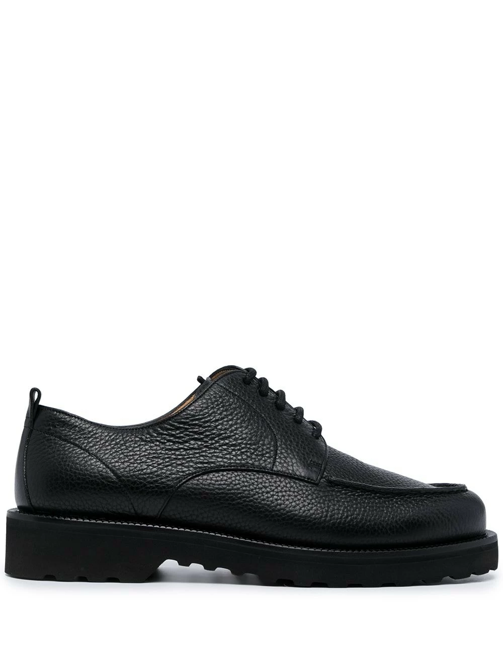 Texture grainée, confection étanche, bout en amande, fermeture à lacer sur le devant, semelle intérieure à logo, semelle Vibram®. Couleur : noir. Matière : cuir.