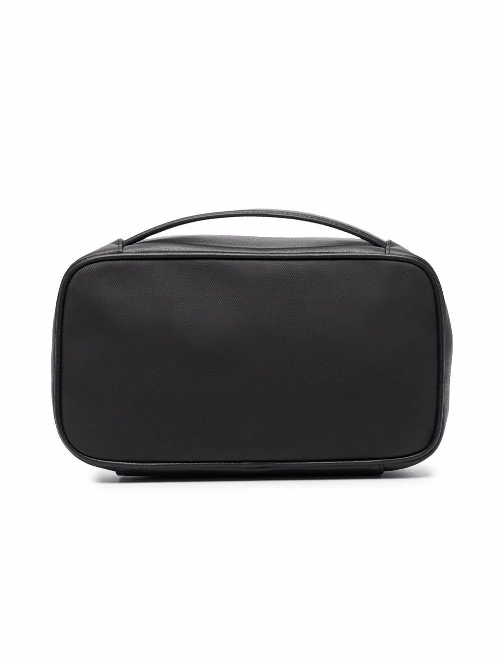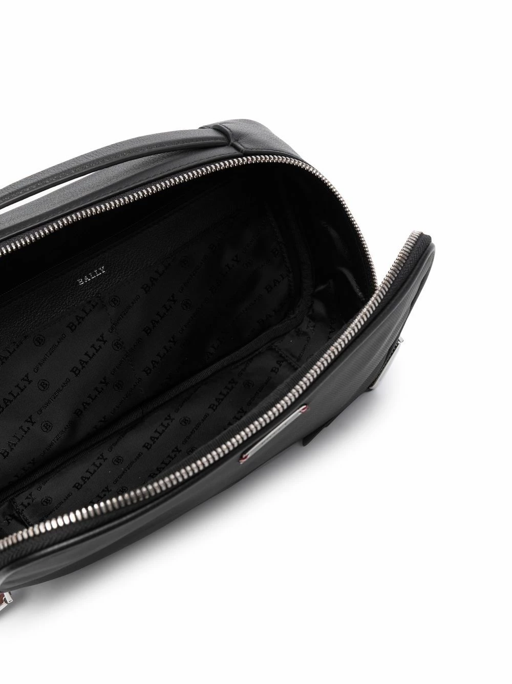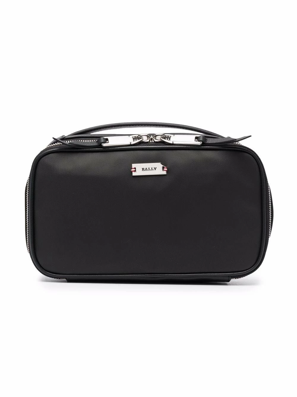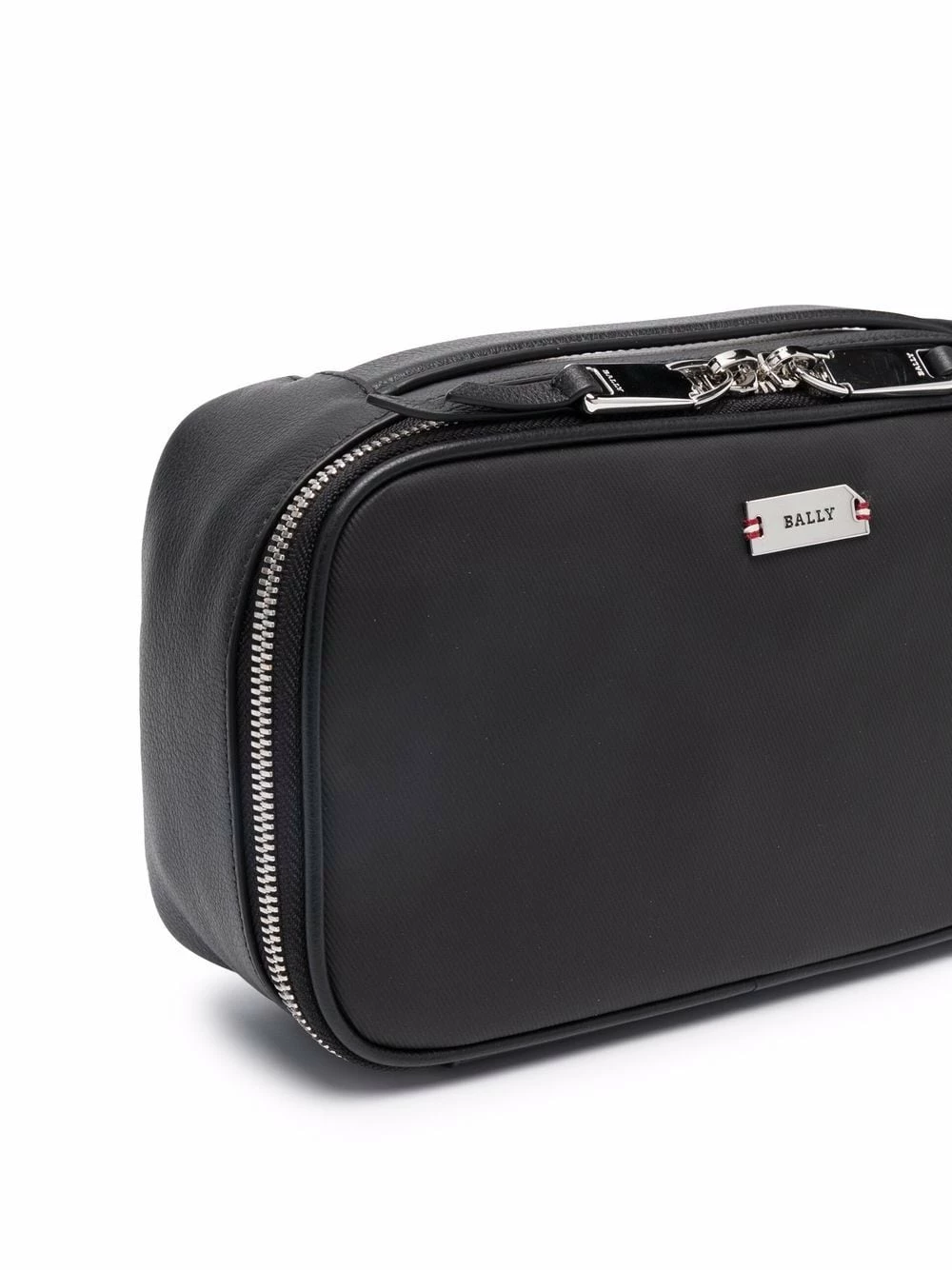 Ornements argentés, plaque logo, fermeture zippée sur le dessus, poche intérieure.