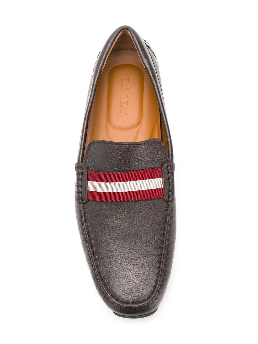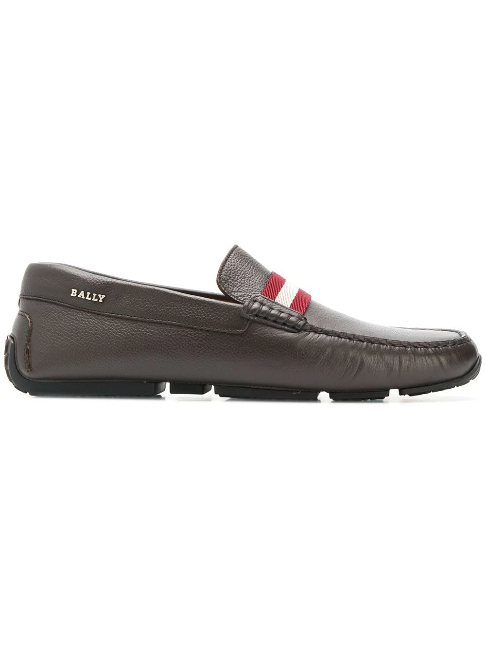 Mocassins Pearce en cuirs Bally avec bout en amande, a slip-on style, a signature three stripe detail, semelle intérieure à logo et semelle plate en caoutchouc. Couleur : marron.