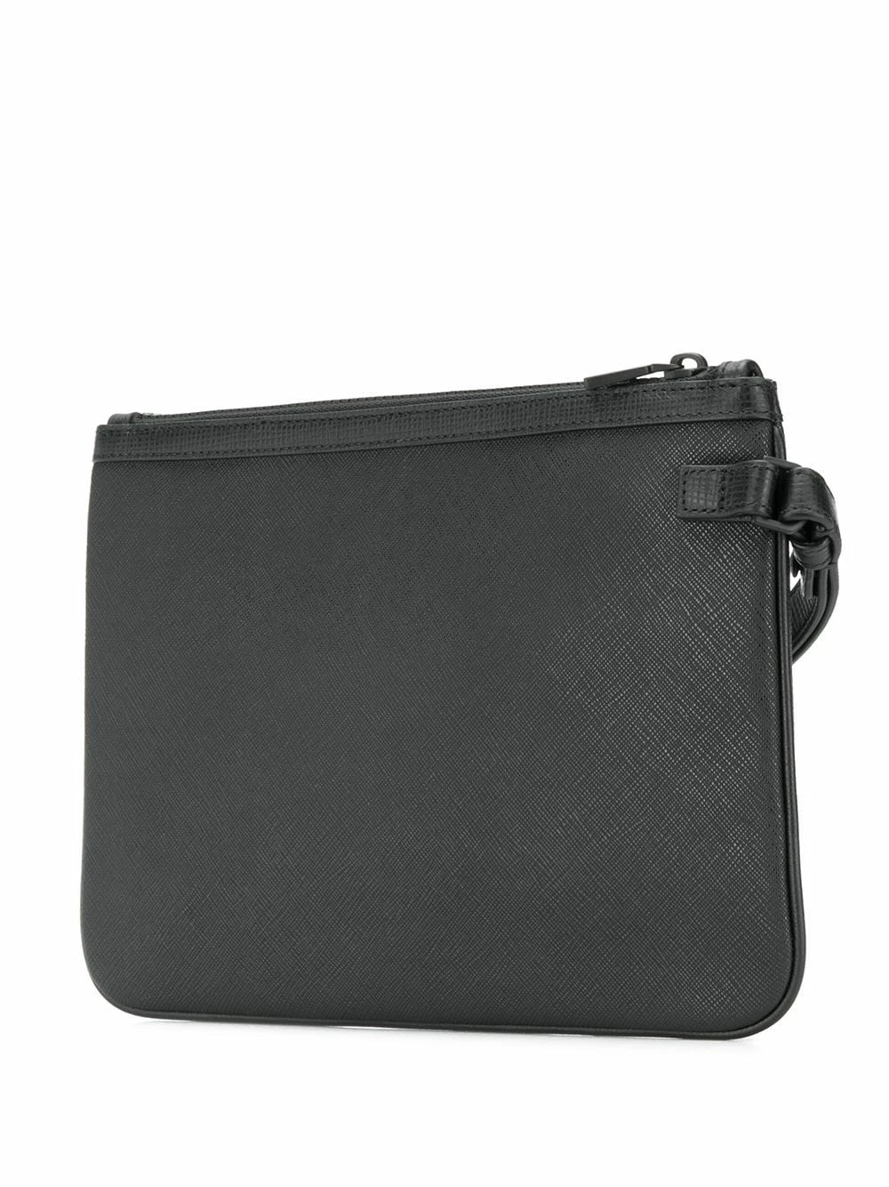 Pochette Skid en cuirs Bally avec fermeture zippée sur le dessus, motif de rayures, logo embossé sur le devant et bride portée poignet. Couleur : noir.