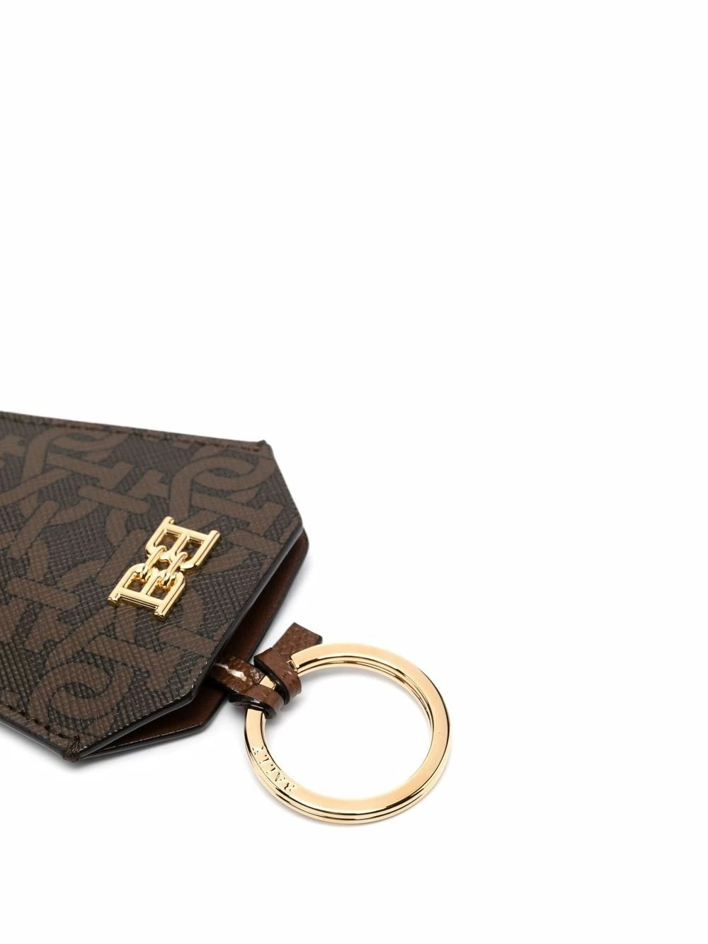 Motif monogrammé, plaque logo dorée, porte-clés pendant, cordon ajustable. Couleur : marron. Matière : cuir.