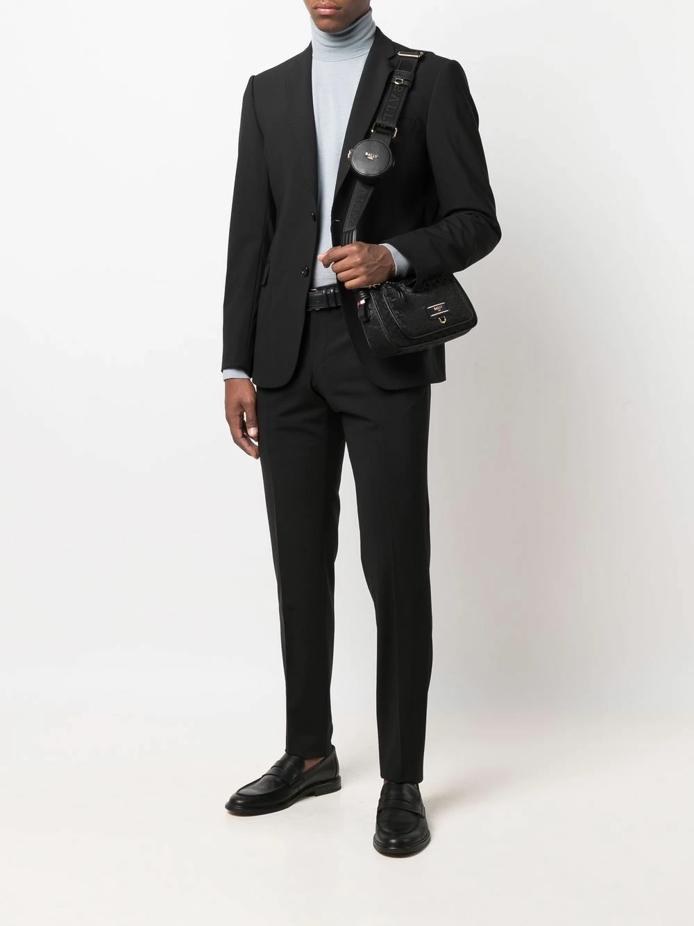 Imprimé monogrammé, bride porté épaule détachable et ajustable, patch logo sur le devant, petite poche plaquée, logo doré. Couleur : noir.