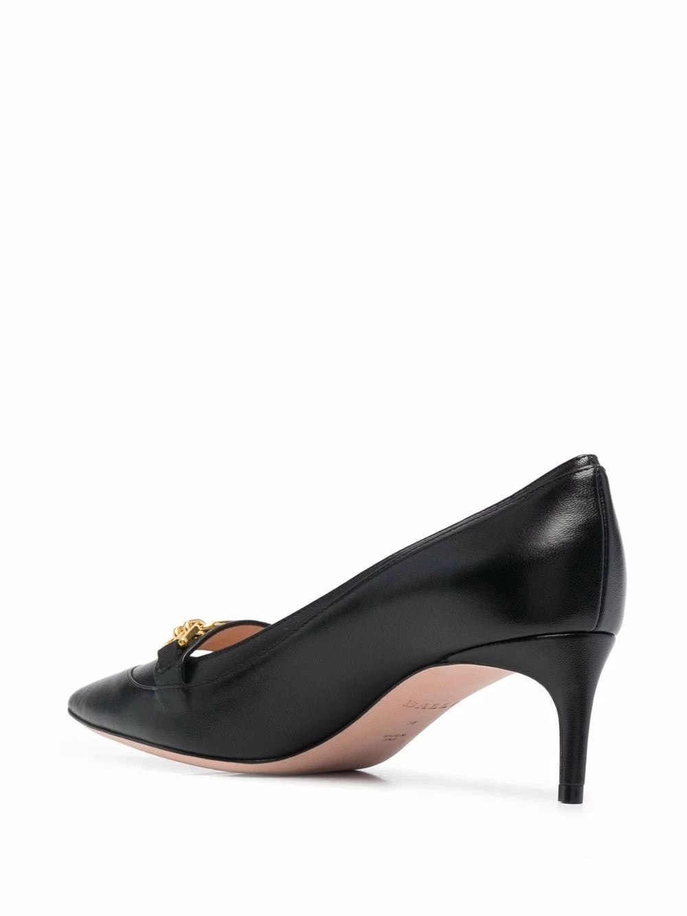 Bout pointu, plaque logo dorée, semelle intérieure à logo, design à enfiler, talon mi-haut. Couleur : noir. Matière : cuir.
