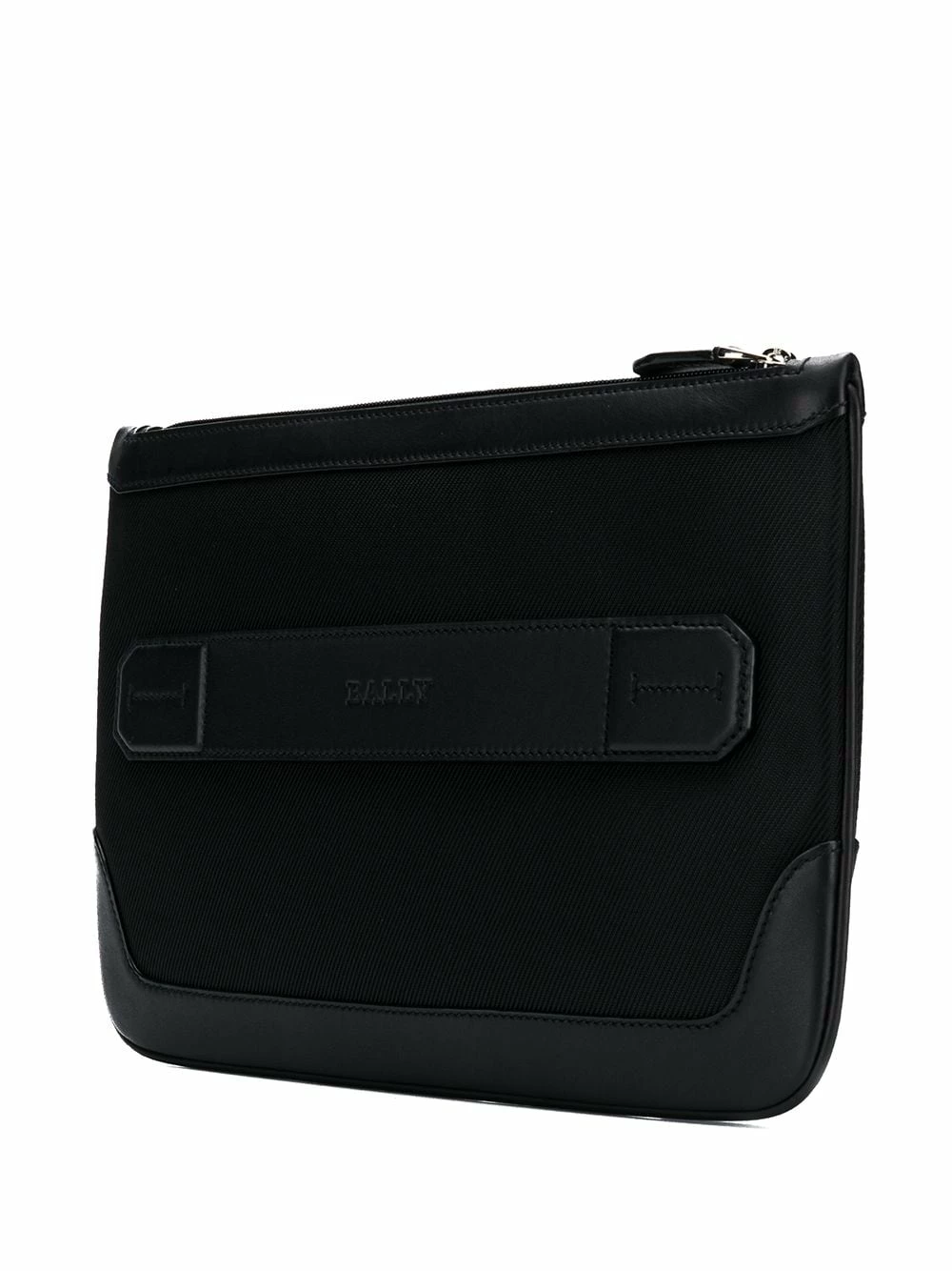 Pochette à fermeture zippée en cuirs Bally avec fermeture zippée sur le dessus, forme rectangulaire, compartiment intérieur et poche intérieure zippée. Couleur : noir.