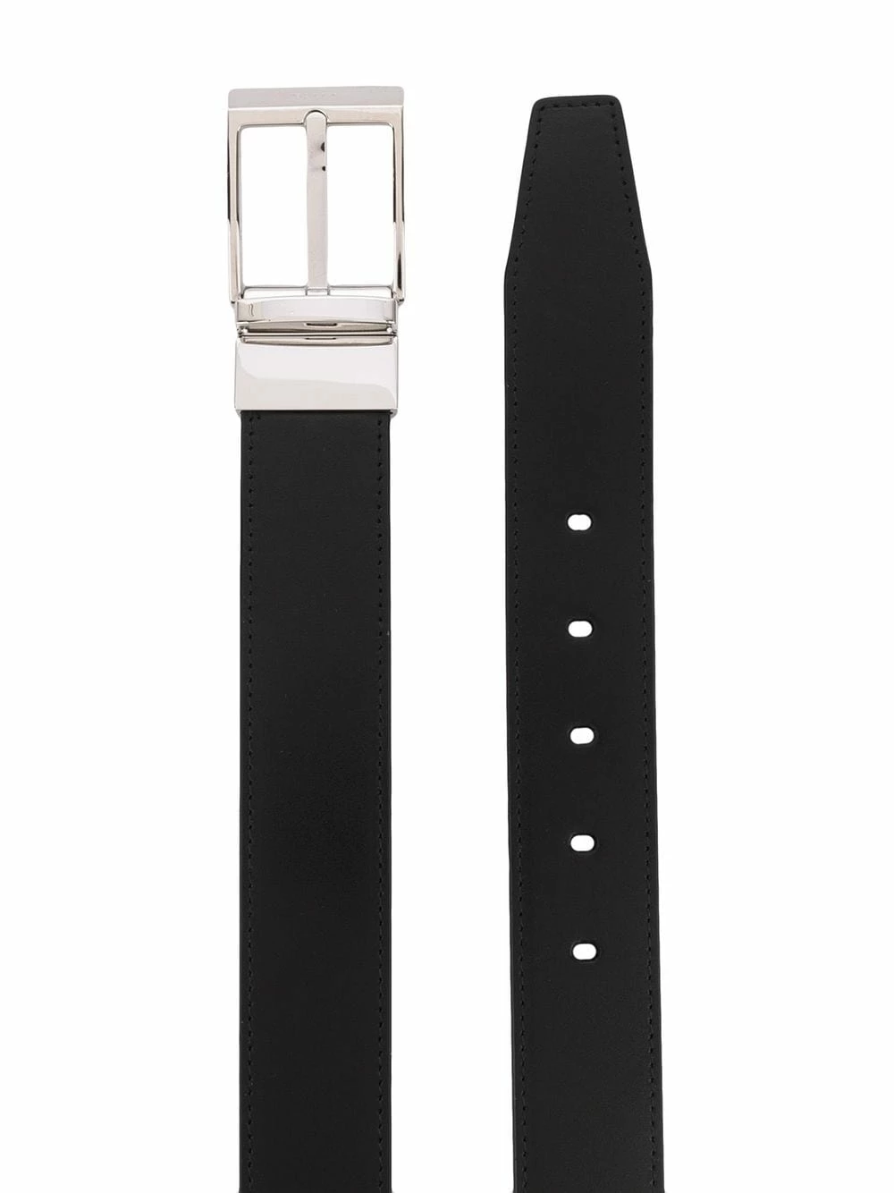 Ceinture à boucle en cuir BALLY avec finitions argentées, fermeture à boucle sur le devant, détails perforés et bout carré. Couleur : noir.