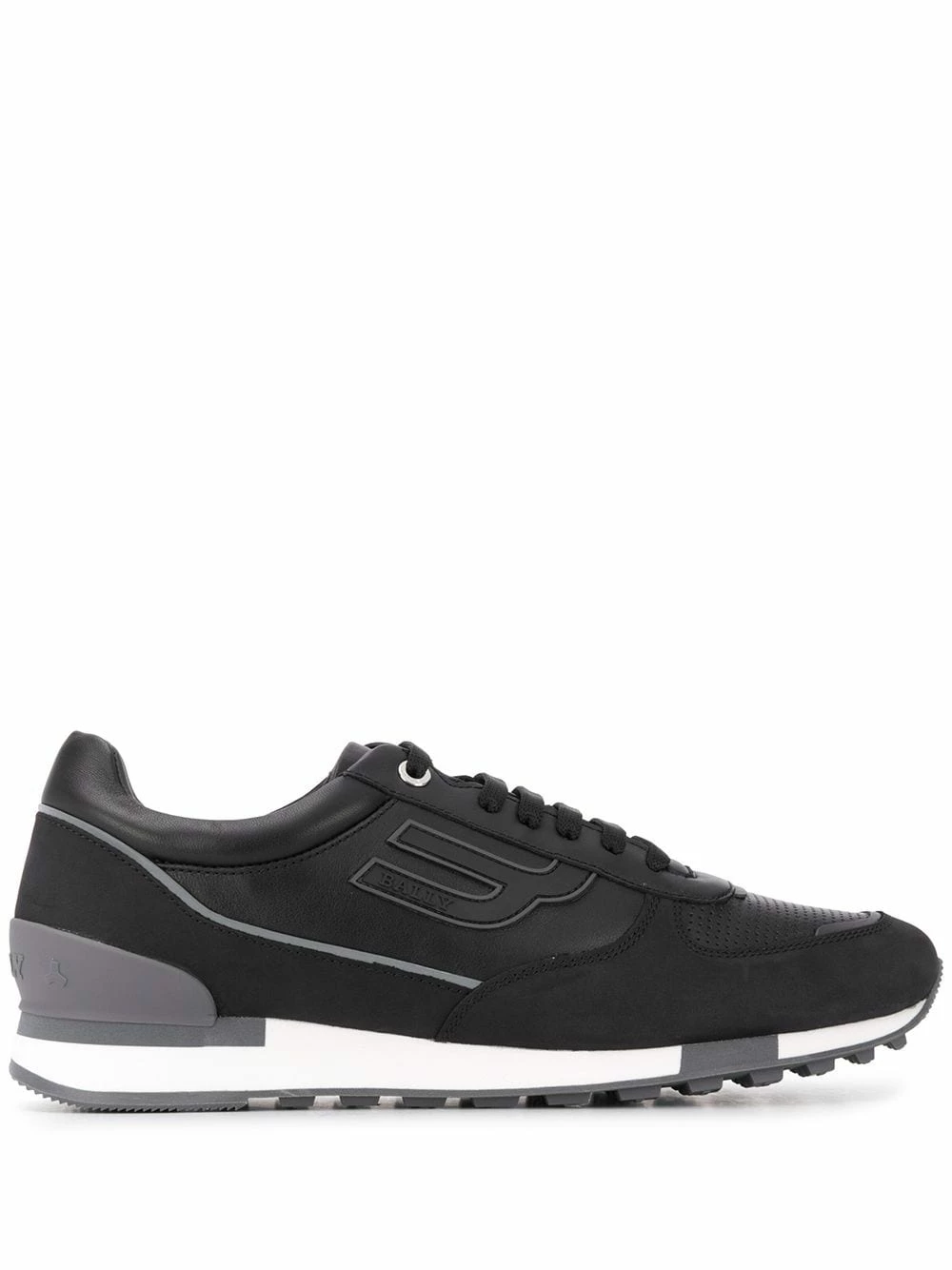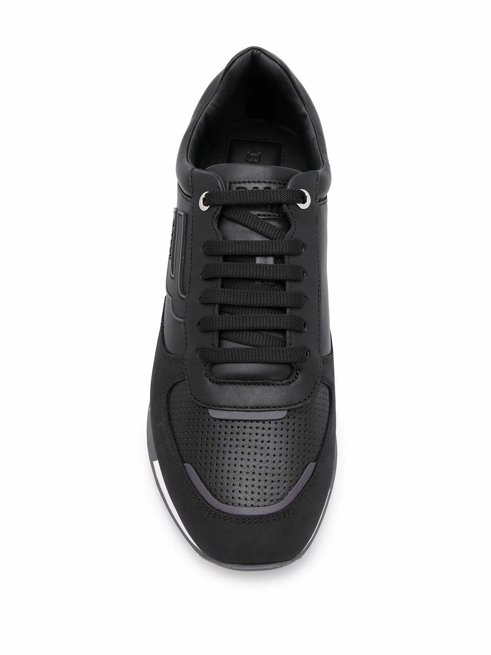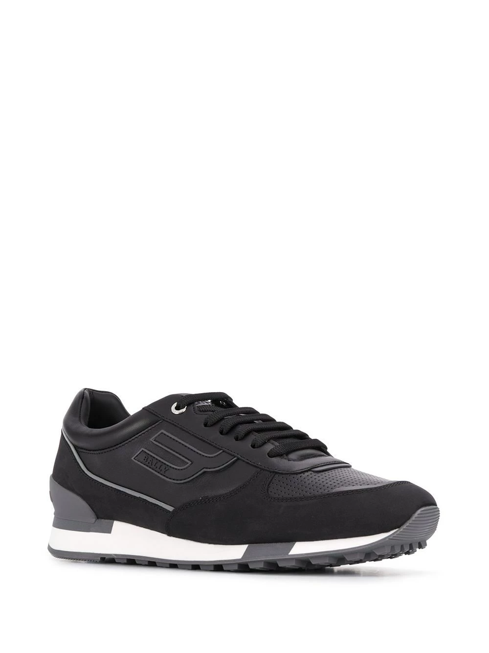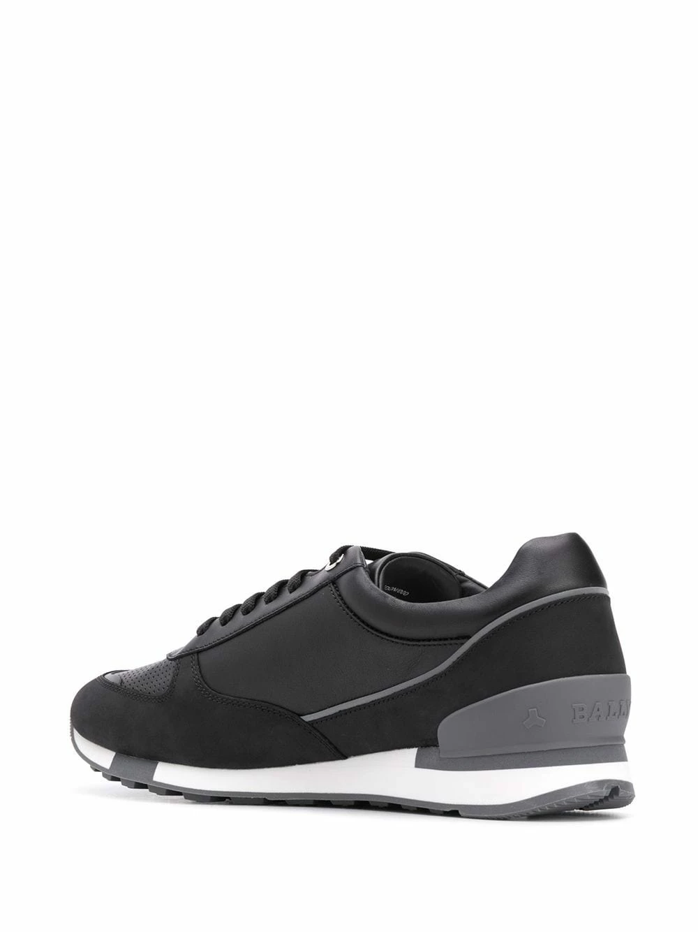 Baskets Glendon à empiècements contrastants en cuir de veau Bally avec détails réfléchissants, perforations décoratives, bout rond, fermeture à lacer sur le devant et semelle en caoutchouc. Couleur : noir.