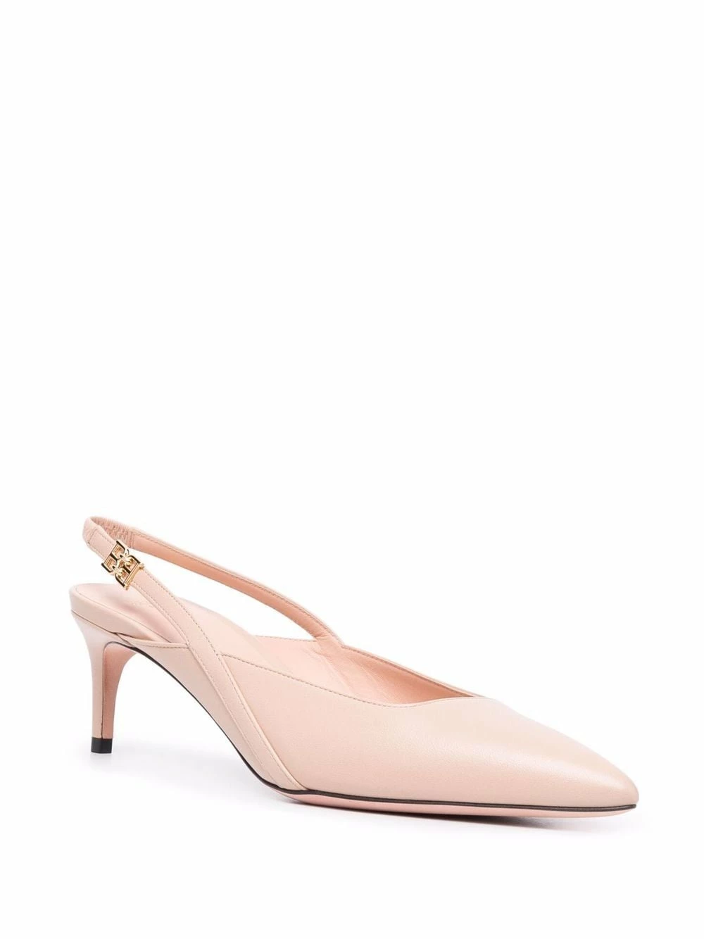 Breloque à logo, bout pointu, bride arrière élastique, semelle intérieure griffée, semelle en cuir. Matière : cuir.