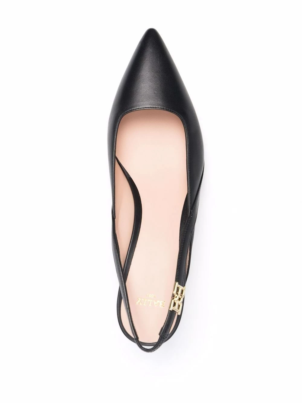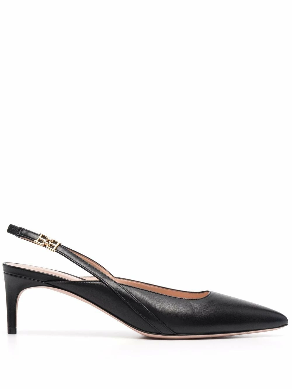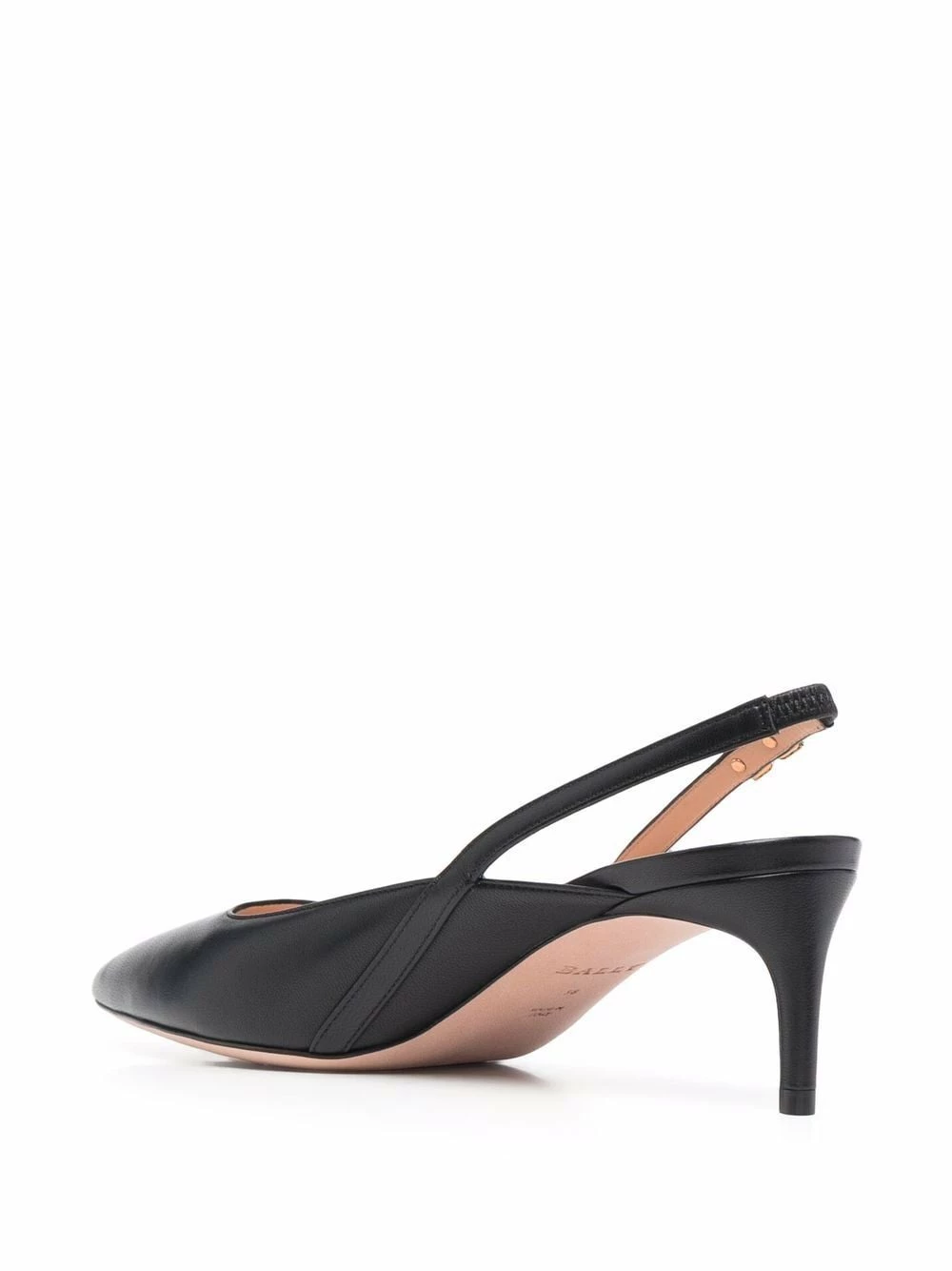 Bout pointu, semelle intérieure à logo, bride arrière, talon mi-haut. Couleur : noir. Matière : cuir.