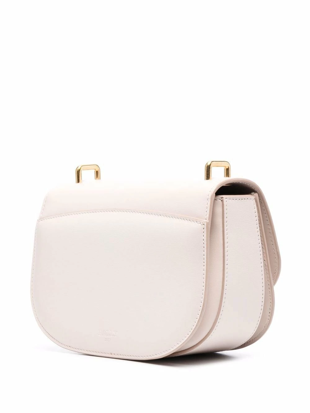 Rabat sur le dessus, finitions en métal doré, compartiment intérieur, poche arrière à rabat, fermoir à cliquet. Matière : cuir.