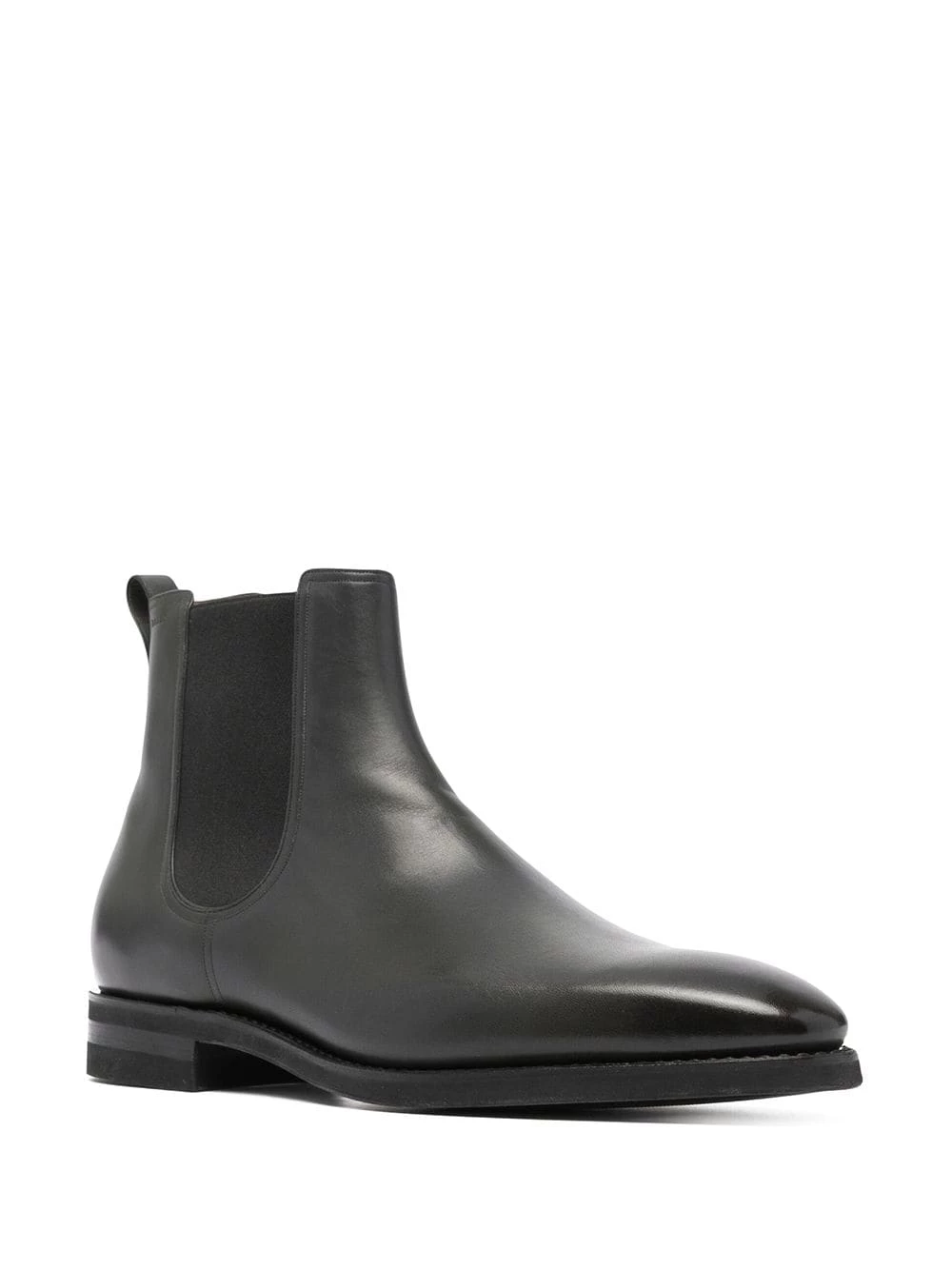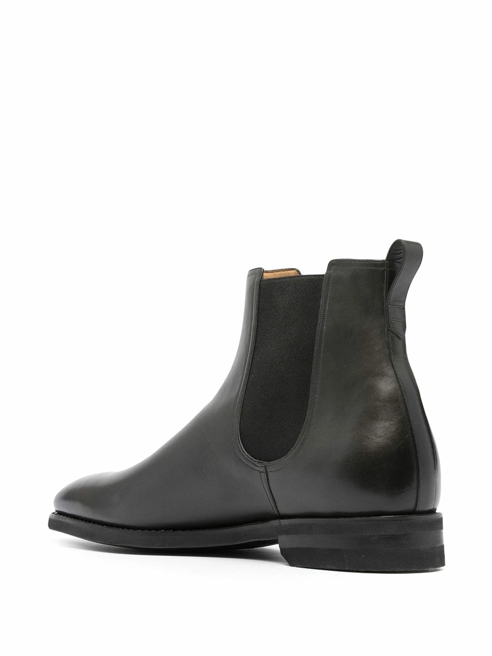 Semelle plate en caoutchouc, languette d’enfilage au talon, empiècements élastiqués sur les côtés, bout en amande. Couleur : Noir. Matière : cuir.