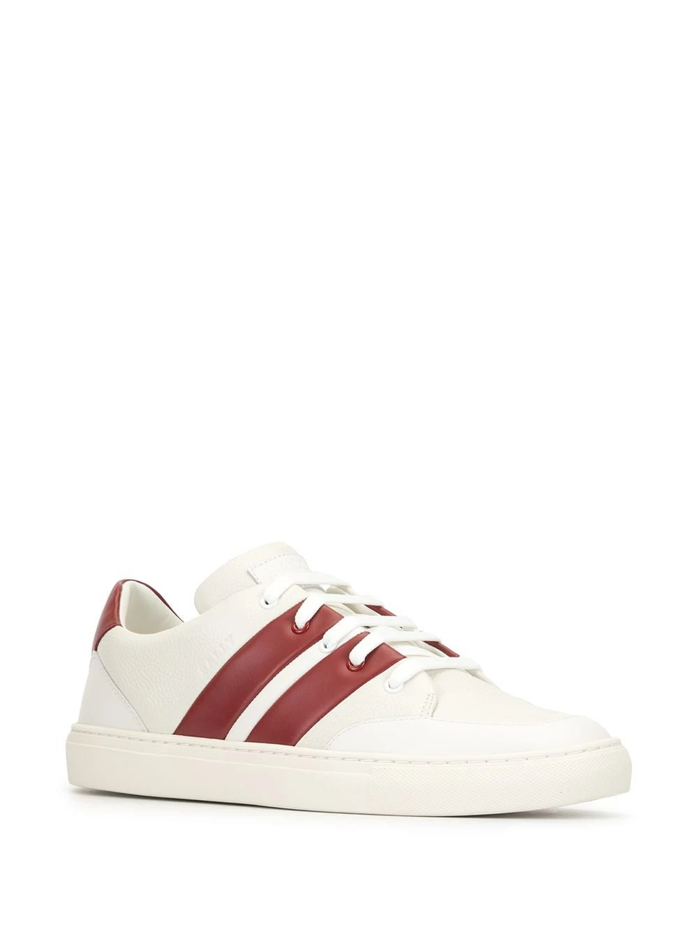 Baskets bicolores en cuir Bally avec bout rond, fermeture à lacer sur le devant, semelle intérieure à logo et semelle plate. Couleur : blanc.