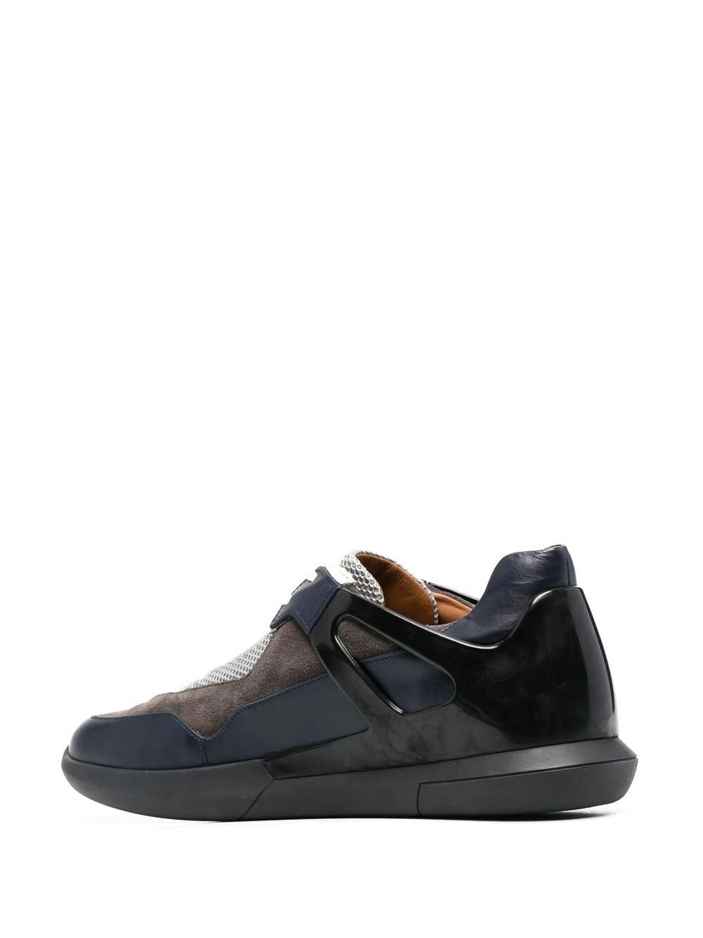 Design à empiècements, fermeture à lacer sur le devant, semelle plate en caoutchouc. Matière : cuir.
