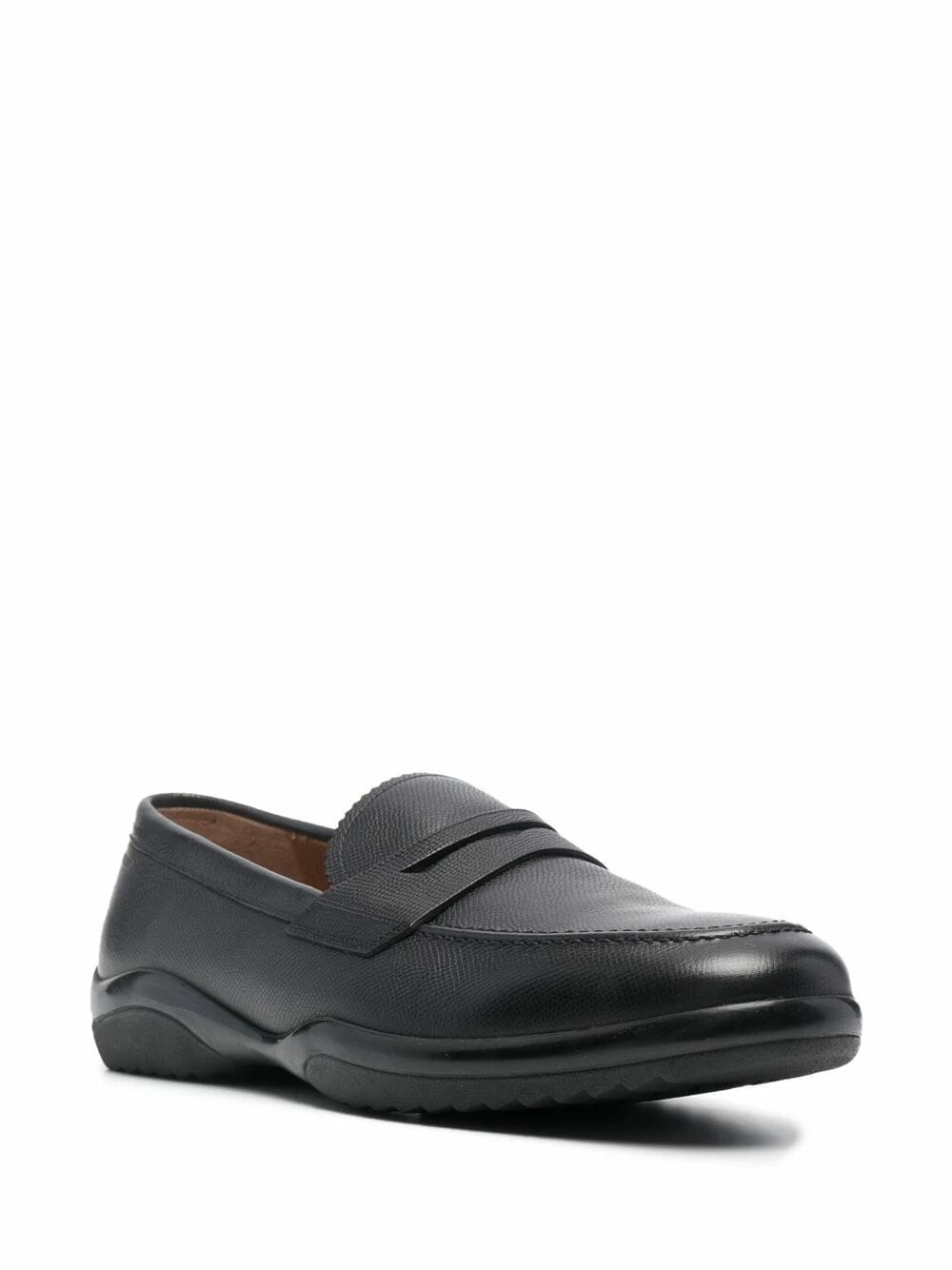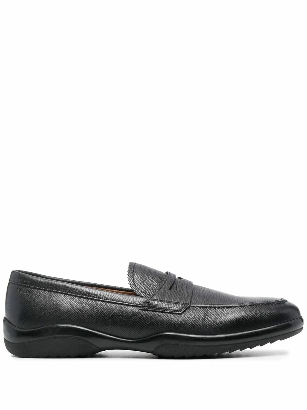 Design à enfiler, entaille penny, bout rond, semelle intérieure à logo, semelle plate en caoutchouc. Matière : cuir.
