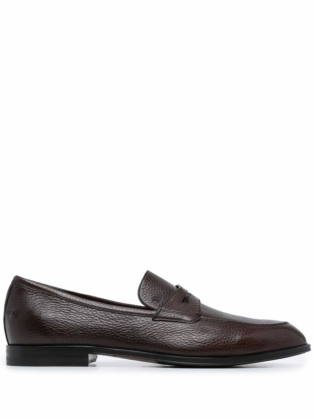 Semelle intérieure à logo, bout rond, semelle plate. Couleur : marron.