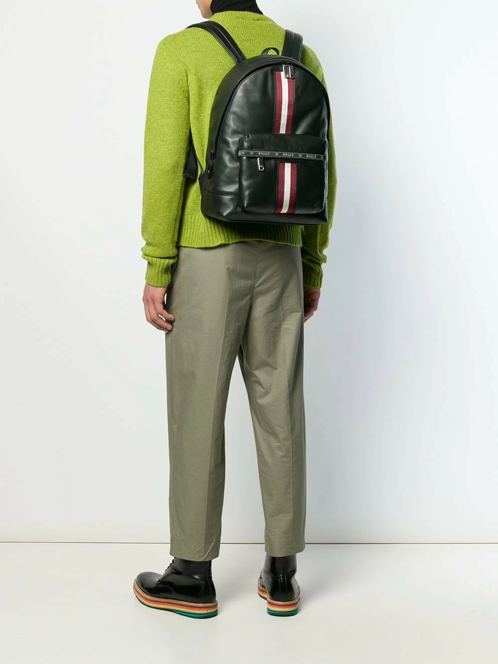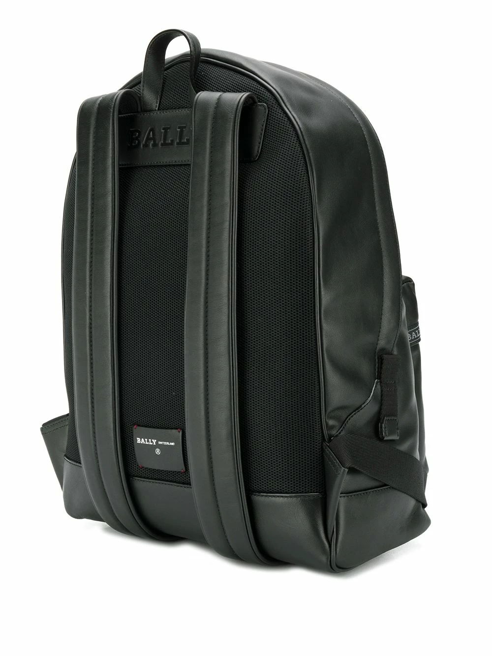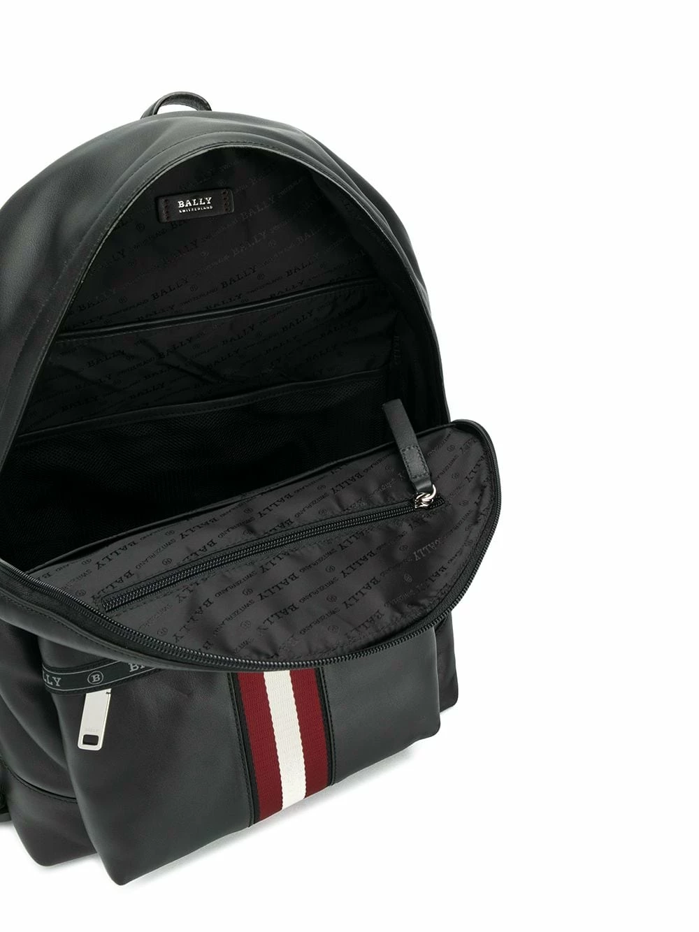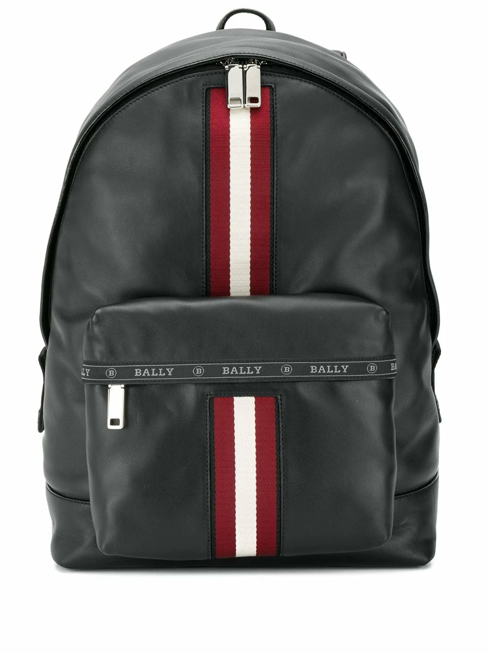 Sac à dos Harper en cuir de veau Bally avec anse sur le dessus, fermeture zippée sur le dessus, motif de rayures, fermeture zippée devant et bretelles réglables. Couleur : noir.
